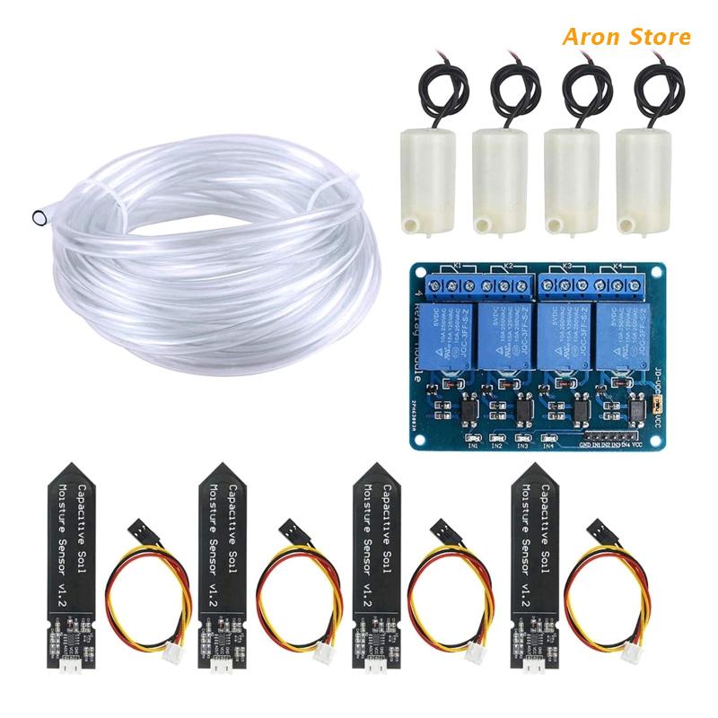 Автоматический полив сада Системы: сочетает в себе насос, трубы, влажности почвы Сенсор и 4-Канальный Релейный модуль 5В на одном заводе для полива и орошения Системы, в том числе, комплект для всей система капельного орошения «сделай сам» Системы.