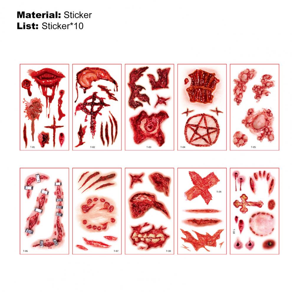 Подчинитесь водонепроницаемому и влагонепроницаемому дизайну, эта наклейка может поддерживать на теле около 7 дней без выцветания или падения, она может украсить ваше тело для празднования Хэллоуина, а также может покрыть шрамы вашего тела.