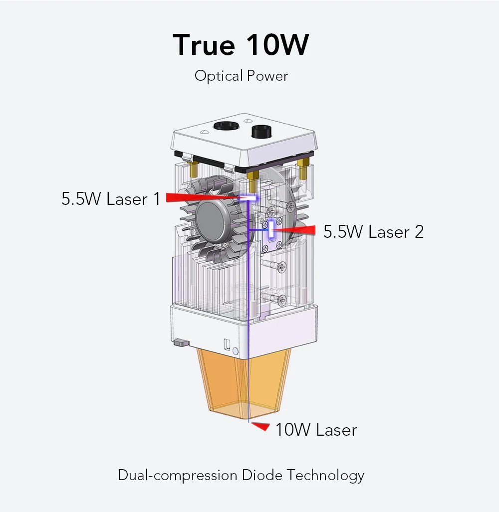 4.LU2-10A оптимизированная система охлаждения (двойное охлаждение вентилятора), усовершенствованная технология с двойными компрессионными пятнами, лазерный модуль принимает 3-й луч, сочетающий технологию с двойными компрессионными пятнами. Сжатый точка является 0,05 мм x 0,1 мм. Которые могут отрезать 20 мм деревянные доски и 30 мм акриловые листы. Это почти превосходит эффект 60 Вт CO2 лазера.