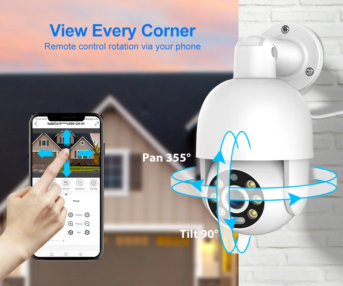 (1) Цифровая зум-камера с круизными крышками 355 ° по горизонтали и 90 ° по вертикали, мониторинг вашего дома или двора со всех сторон.