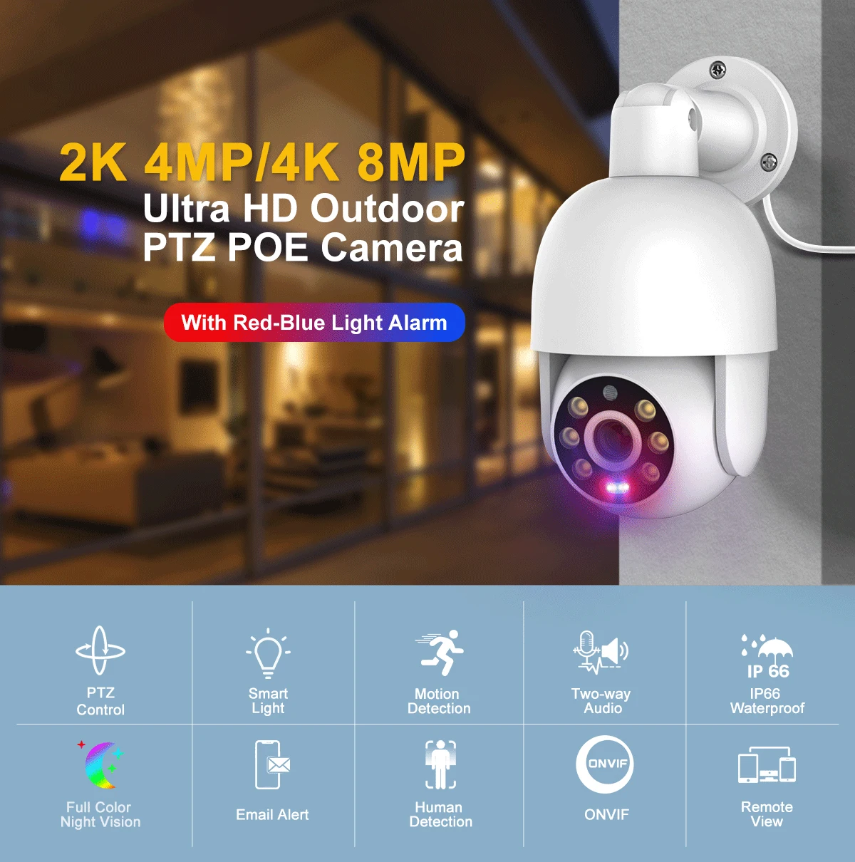Эта PTZ WiFi камера имеет прочный корпус и корпус, Уровень водонепроницаемости IP66 делает ее идеальной для наружного наблюдения. Он может выдерживать суровые погодные условия. Включая дождь, снег, сильный холод и тепло