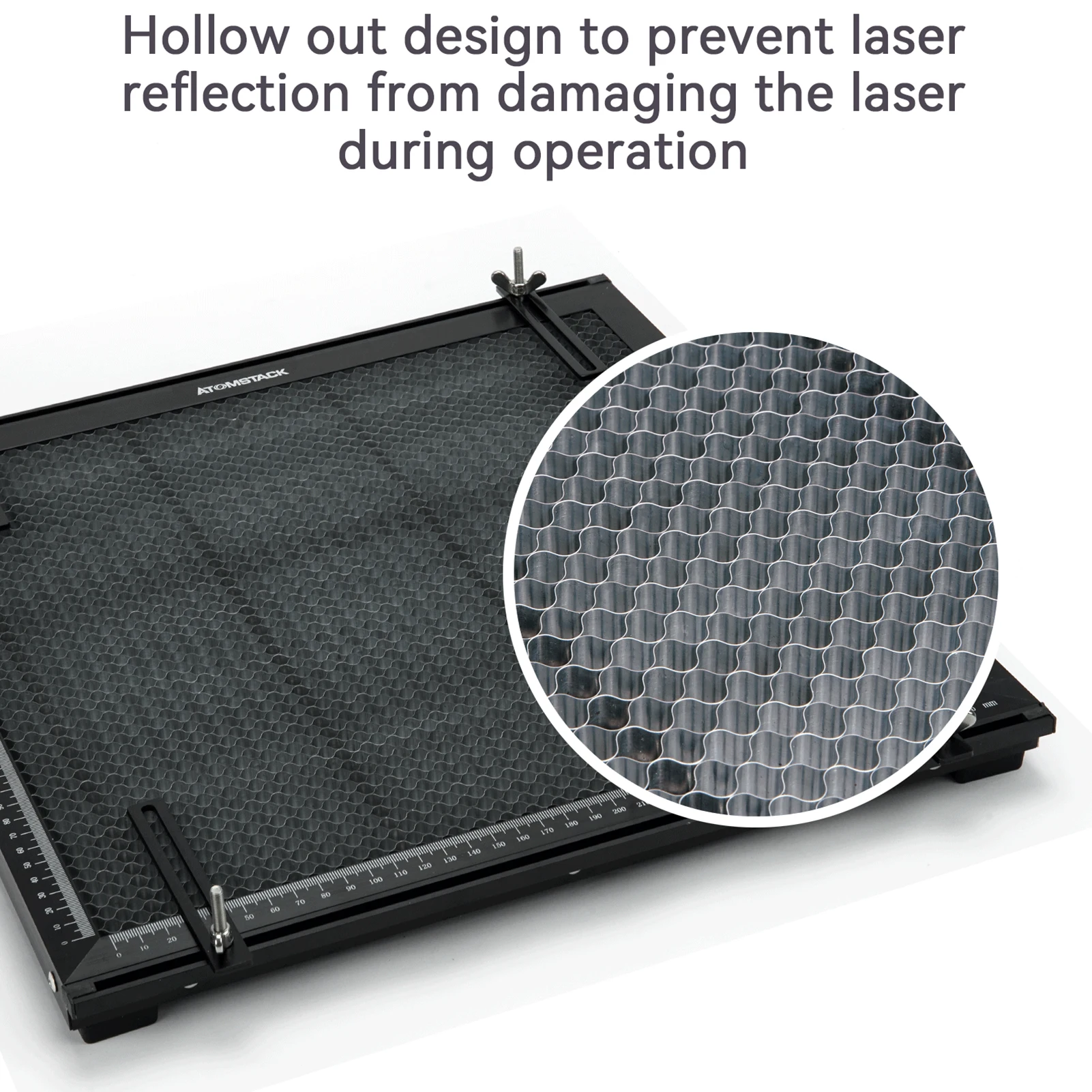▶Негабаритный размер защиты: максимальная поддержка защиты резания составляет 445x445 мм, а размер сота-400x400 мм, что идеально подходит для машин с рамкой Atomstack.