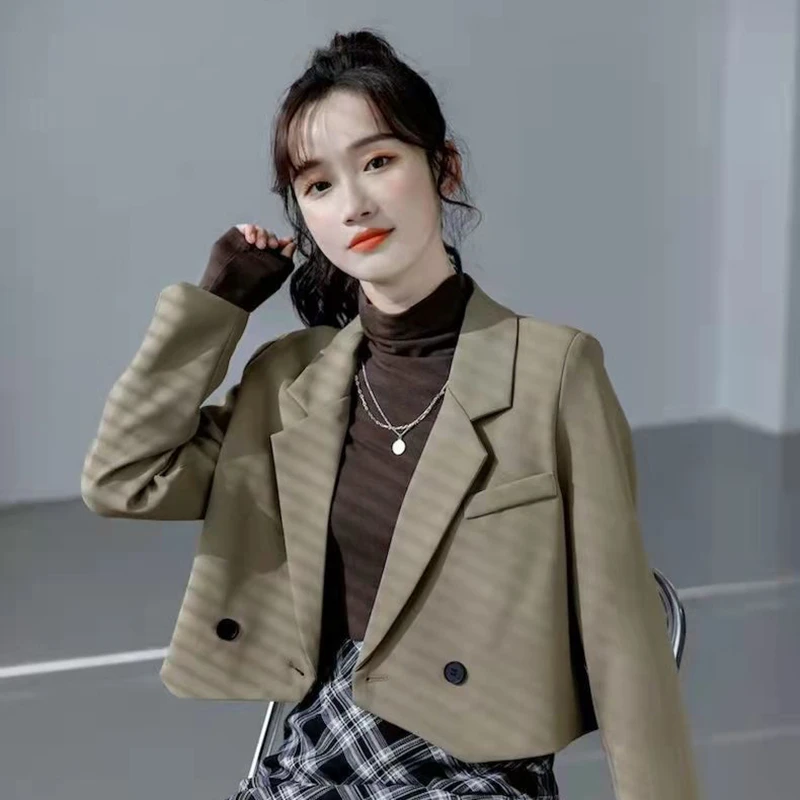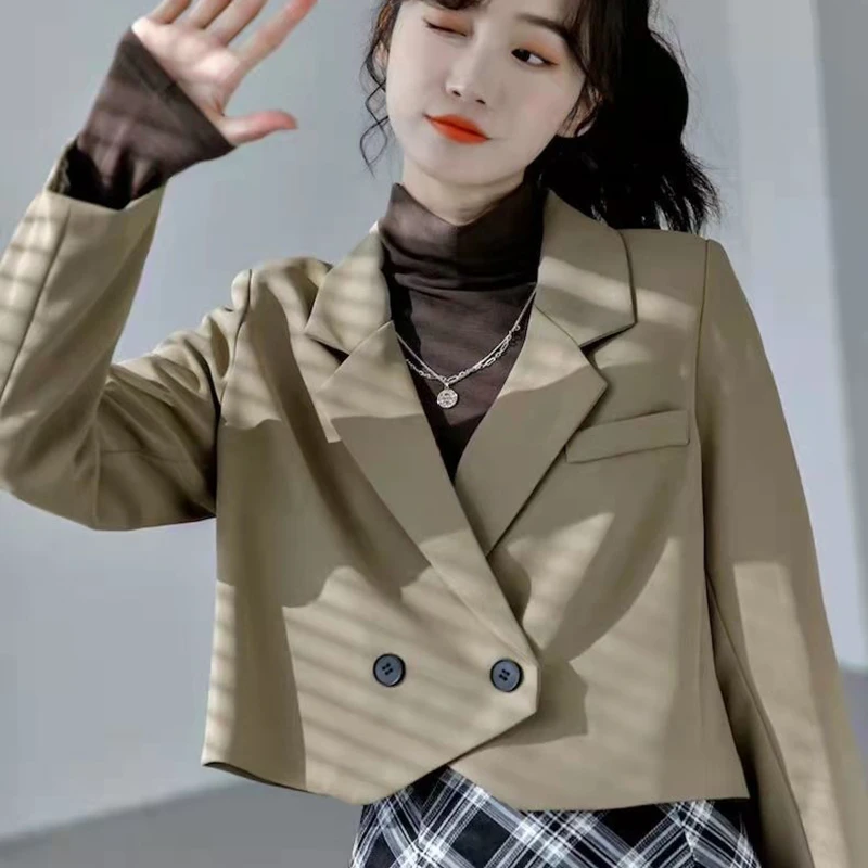 Luckever корейский обрезанный блейзеры для женщин сплошной цвет простой одной кнопкой Верхняя одежда T...Купить сейчас