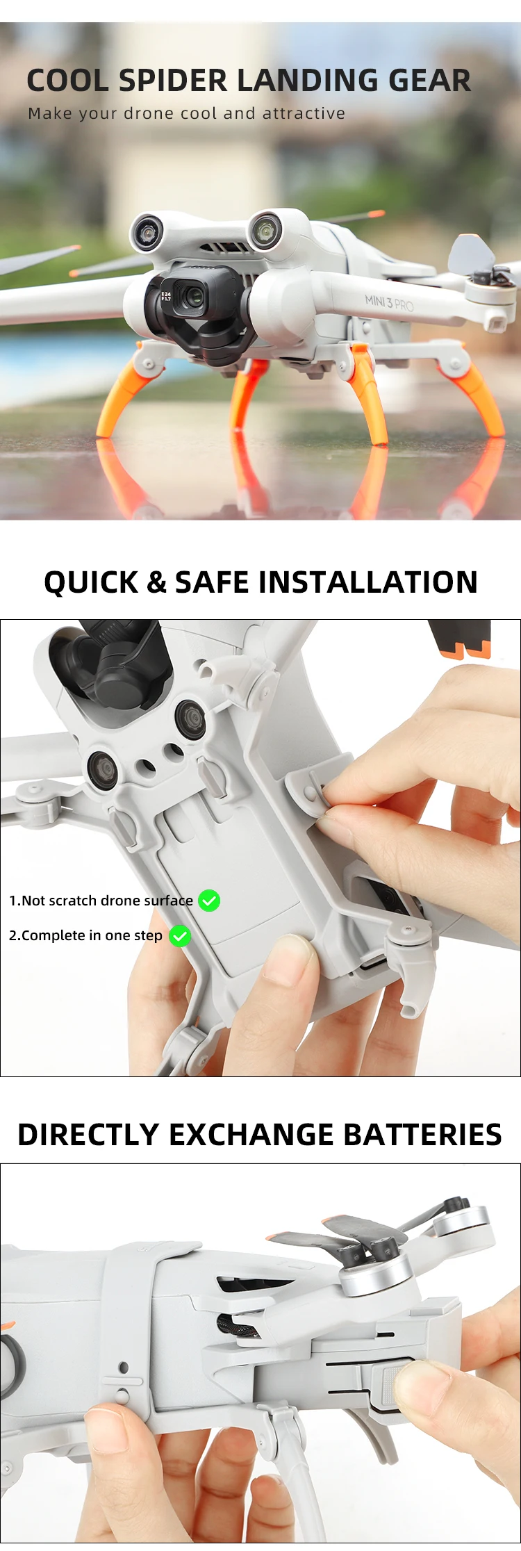 -Неразрушающая и быстрая установка, одна кнопка закрытия, и не поцарапает Дрон.
