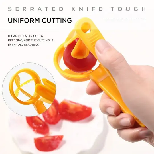 Он может Легко нарезать виноград, клубнику и маленькие помидоры В четвертях. & nbsp; Разделитель фруктов, Быстро и равномерно нарезать на куски Просто нажмите, красиво и практично.