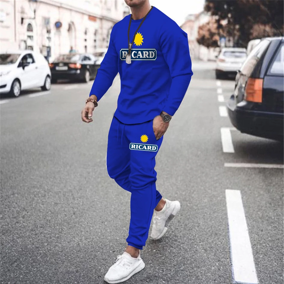 Летняя мужская футболка с длинными рукавами с 3D принтом + длинные штаны (костюм для бега)