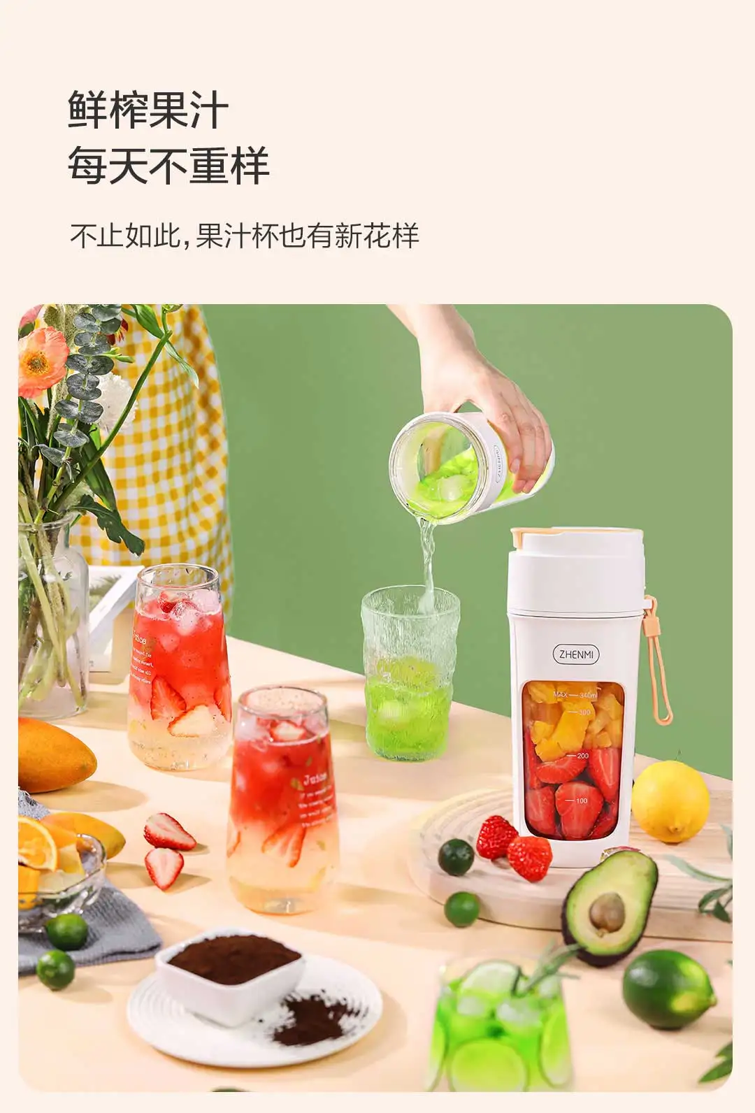 Zhenmi Беспроводная электрическая соковыжималка 340 мл портативный фруктовый блендер 8 лезвий режущая головка смузи делая чашку для сока