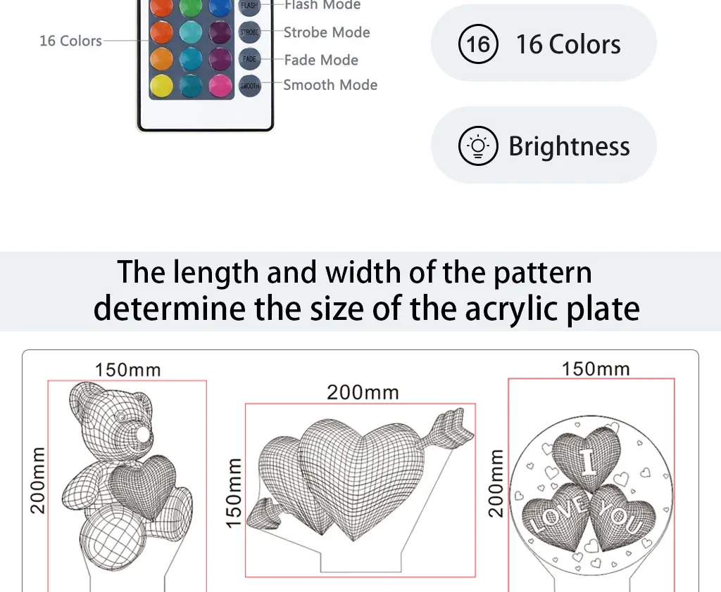 Mode режим дистанционного управления: пульт дистанционного управления с включением/выключением, 16 цветов, регулируемая яркость, режим вспышки, плавный режим.