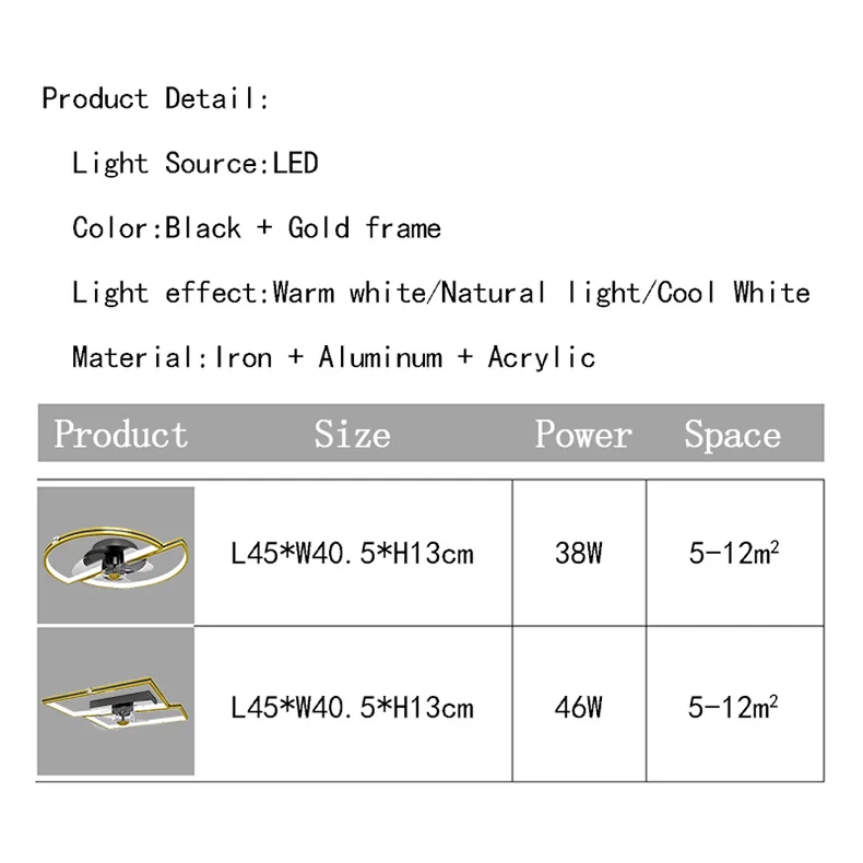 Square-L45 * W40.5 * h13 см; Мощность: 46 Вт; Площадь: 5-12 квадратных метров