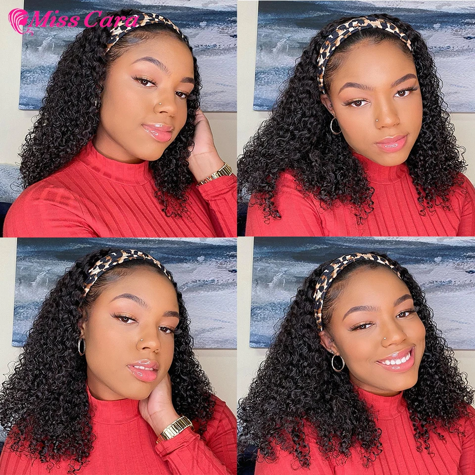 Кудрявый парик с головной повязкой, человеческие волосы 180%, полная машина, бразильские человеческие волосы Remy, парики для женщин, бесклеевые человеческие волосы, милый парик