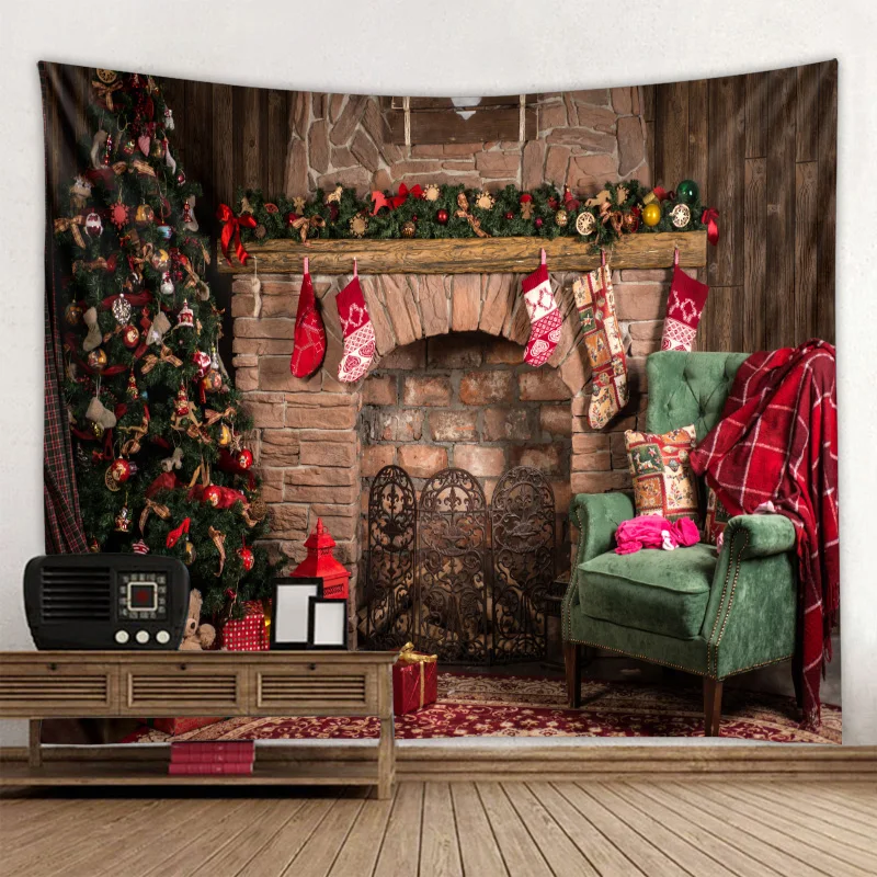 Аксессуары для украшения дома Рождественский фоновый гобелен камин