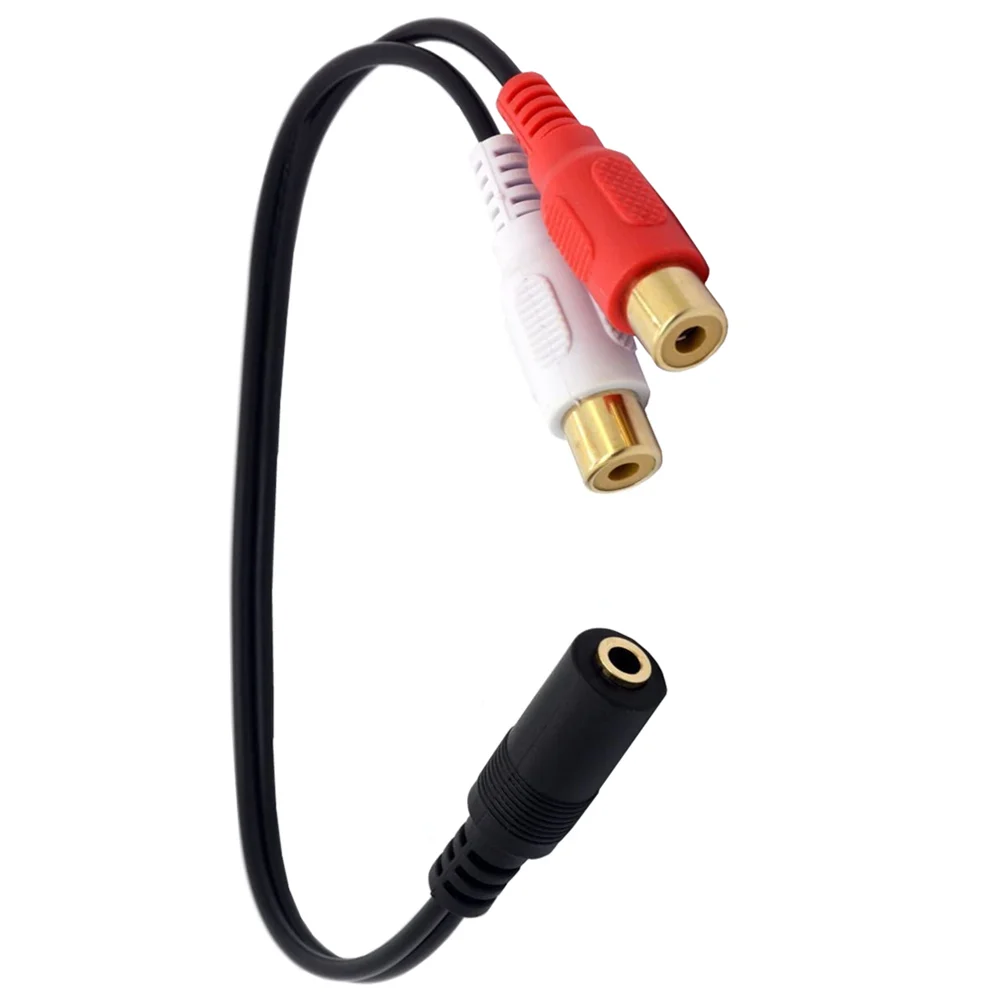 Разъемы: 3,5 мм (1,8 ") Женский двойной RCA Женский аудио сплиттер. Этот 3,5 мм адаптер RCA идеально подходит для преобразования звука с помощью компьютера или каких-либо других источников, что выводит 3,5 ММ Наушники разъем типа с ресивером, ампер, или других устройств, которые используют стерео RCA вход.
