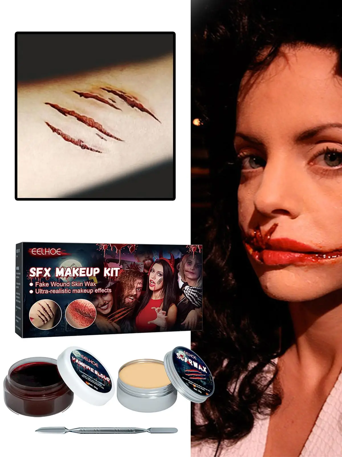 1. Эффекты макияжа: вы можете использовать наш набор воска для макияжа для достижения реалистичных эффектов. Вы можете создавать большие эффекты, такие как ожоги, большие раны, порезы, шрамы, укусы и т. д. легко создавать порезы и деформации или другие формы, такие как создание носа клоуна.