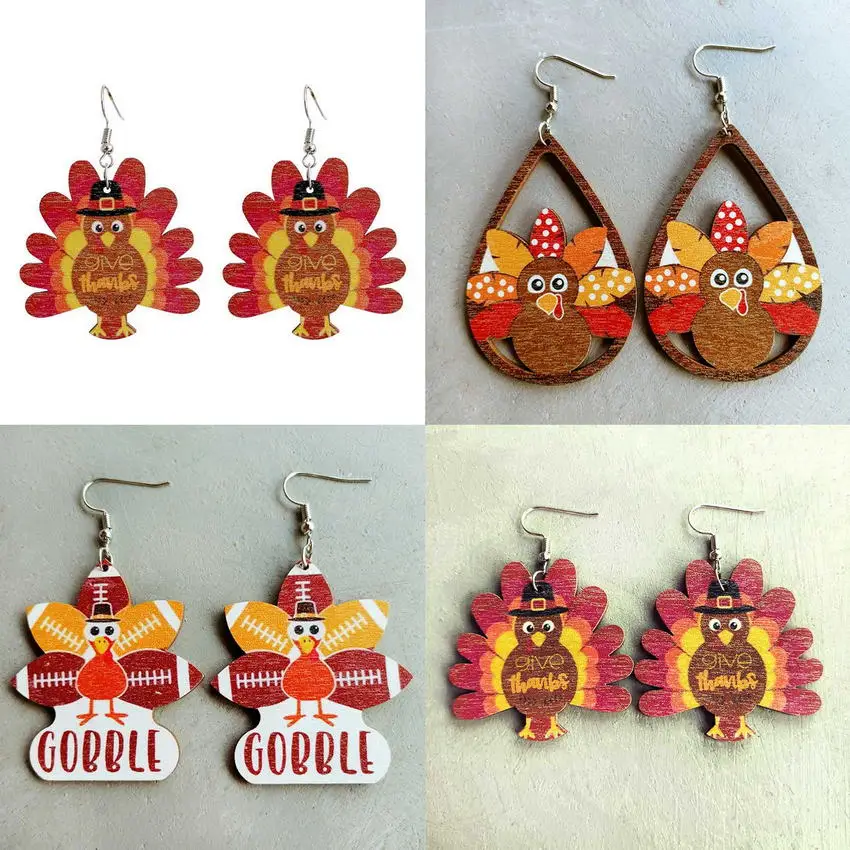 Лазерная резка деревянная турецкие серьги для женщин 2022 Новинка Осень Glowforge серьги на День благодарения праздничные ювелирные изделия оптовая продажа