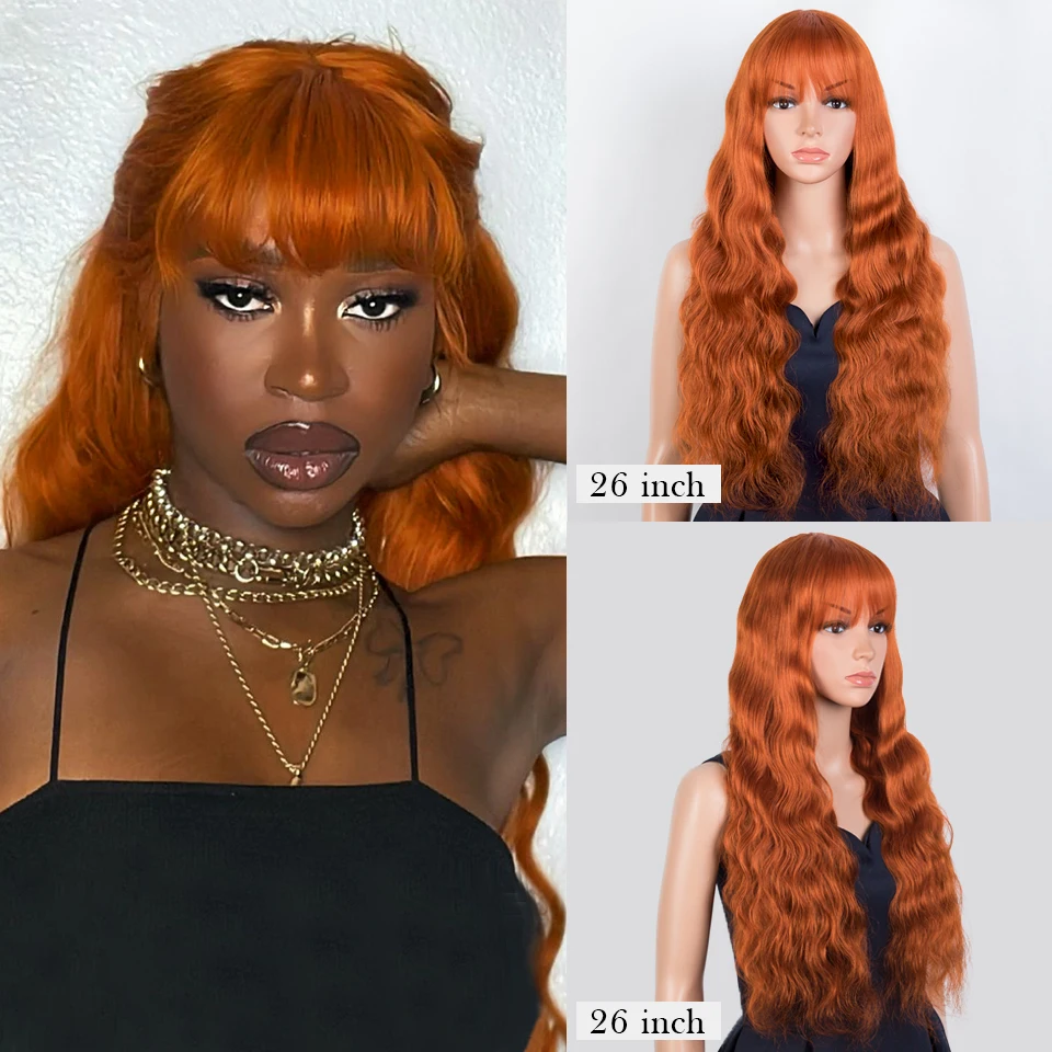 Дебютный длинный оранжевый объемный волнистый парик, бразильские волосы, парики из человеческих волос с челкой, цветной парик из человеческих волос, недорогой парик