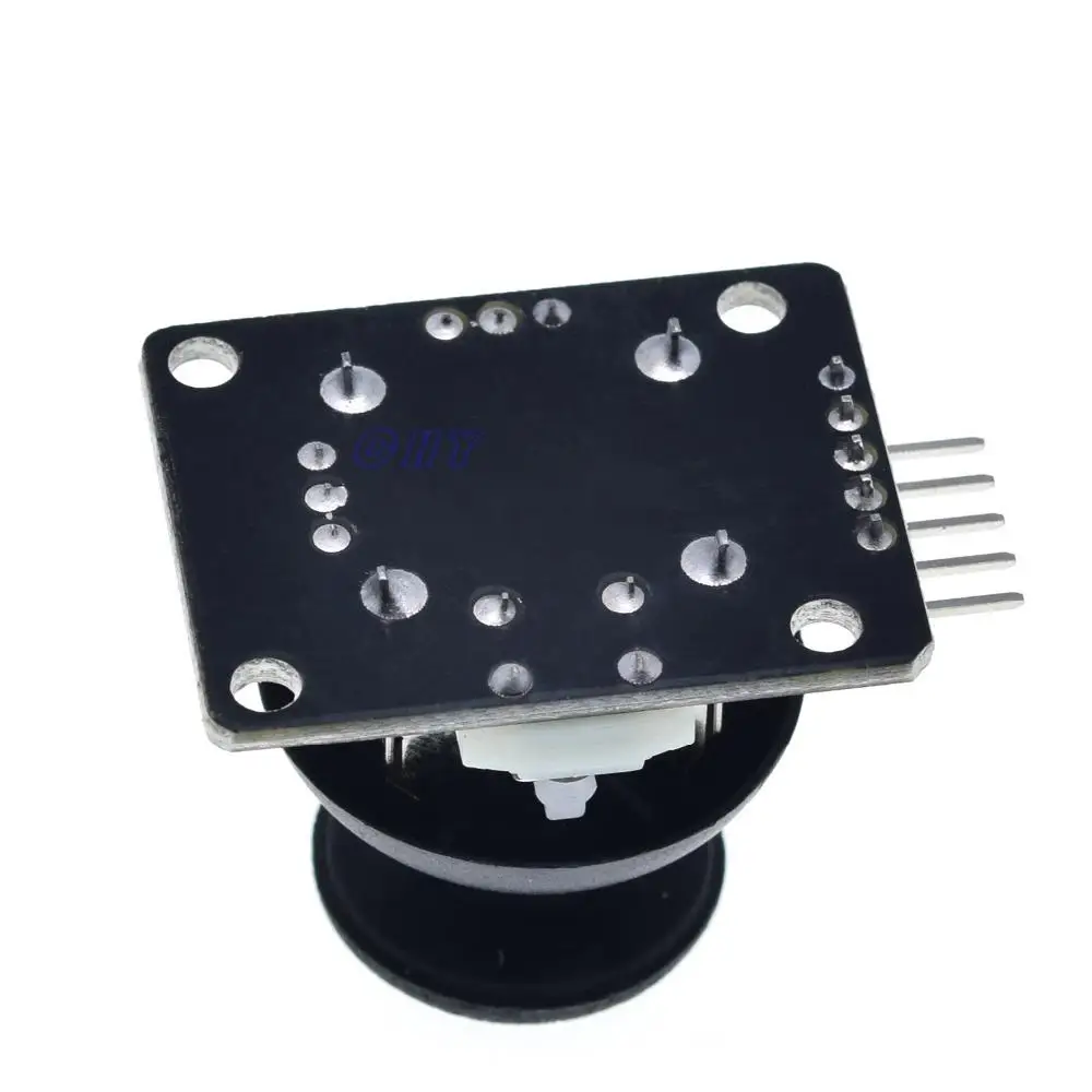 1. Вход Диапазон напряжения: DC 3,3 V 5V2. Выходной сигнал: специальный двухсторонний аналоговый выход модуля и интерфейс цифрового выхода, выходное значение, соответствующее двухосному смещению (X, Y), тип аналога; клавиши, которые пользователь нажимает на ось Z, его тип-цифровой переключатель.3. Контроллер Arduino может быть запрограммирован, плата расширения датчика подключена, в комплекте с творческими удаленными интерактивными работами.4. Поперечный Джойстик-двунаправленный резистор 10K, с рокером в разных направлениях, сопротивление крана с изменением. В этом модуле использует 5V источника питания, первоначальное состояние X, Y тестовое напряжение 2,5 V или около того, при нажатии на направление стрелки, значение считываемого напряжения увеличивается с максимальным до 5 В; Стрелки в противоположном направлении для нажатия, считывание напряжения уменьшается, минимум 0 В.Инструкция: