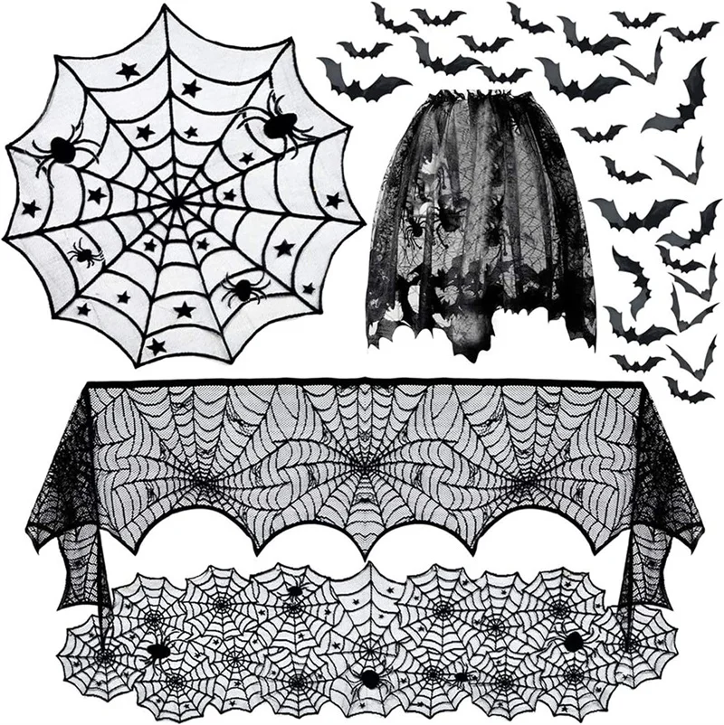 Хэллоуин украшения кружева паук веб Скелет Череп скатерть Runner черный камин мантель шарф событие поставка украшений для вечеринок
