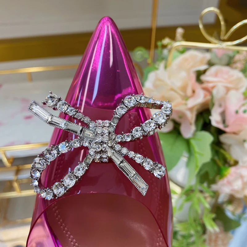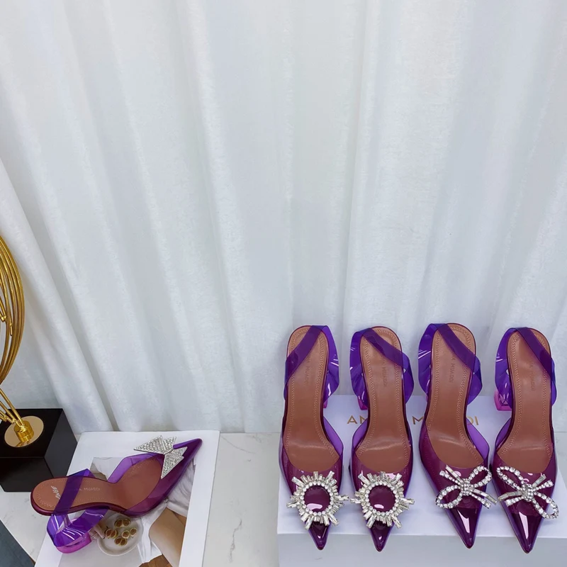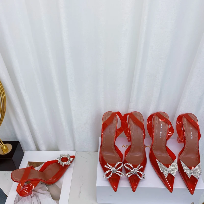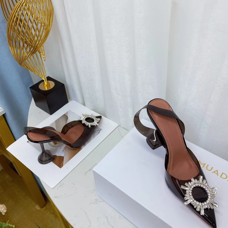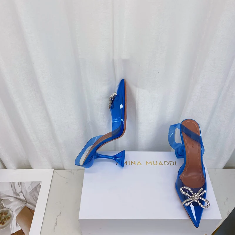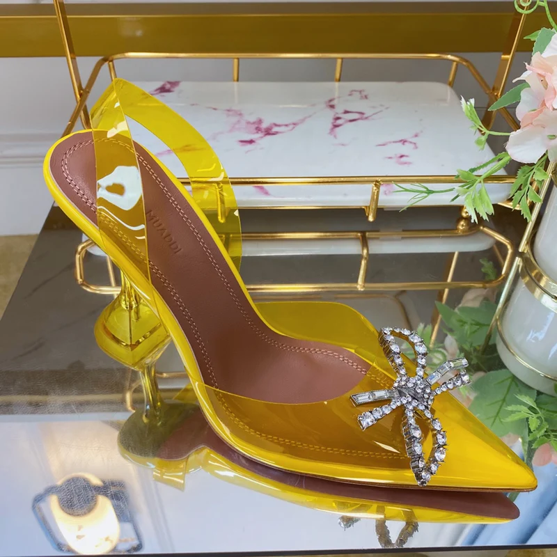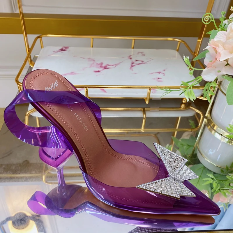 Женские вечерние модельные туфли; Туфли-лодочки из прозрачного ПВХ с кожаной отделкой и кристаллами; AMINA martini-shaped heel MUADDI; Женские туфли на высоком каблуке