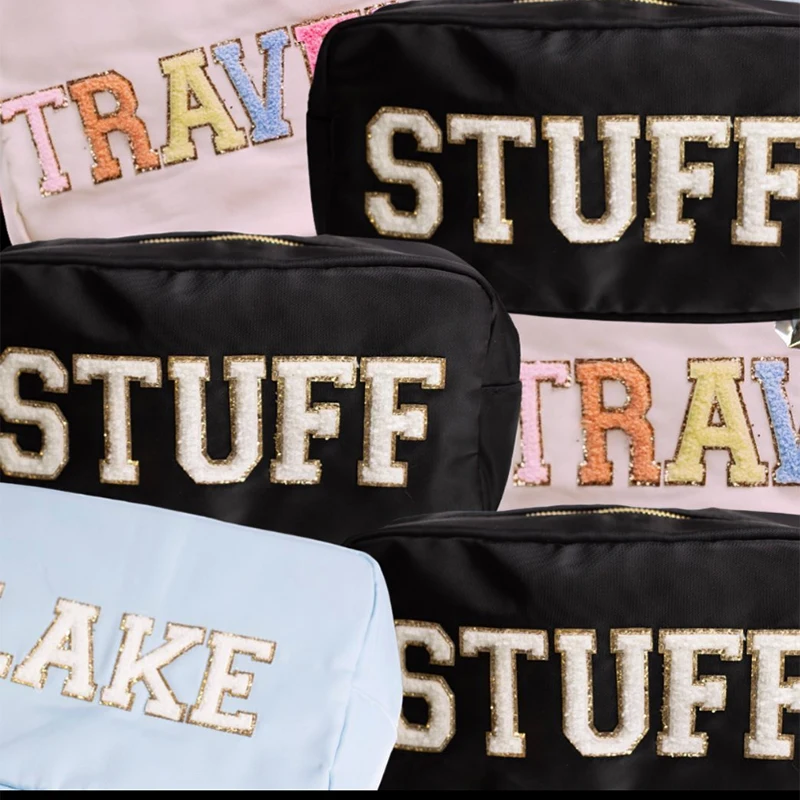 Фабричная цена разноцветные нейлоновые квадратные персонализированные синели патчи для путешествий на заказ для женщин и девочек, ласы, подарки, косметичка для макияжа