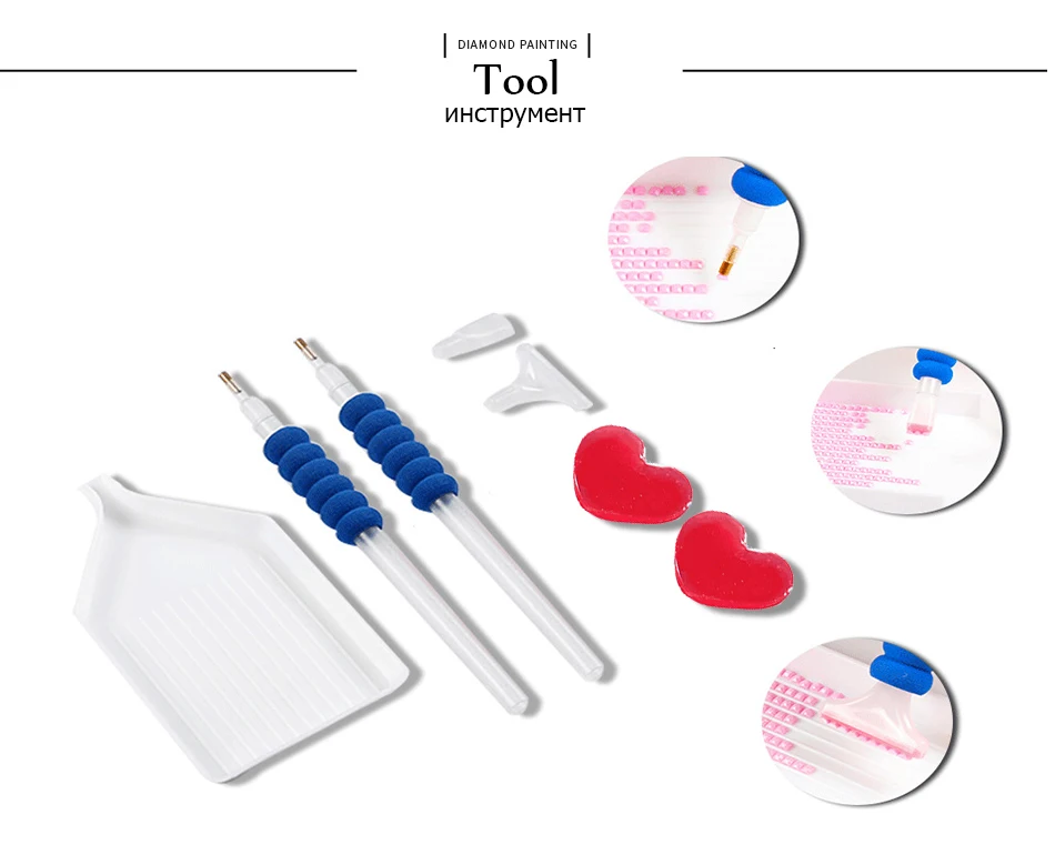 Инструменты: Две ручки, две высококачественные клеи, бриллианты, холст