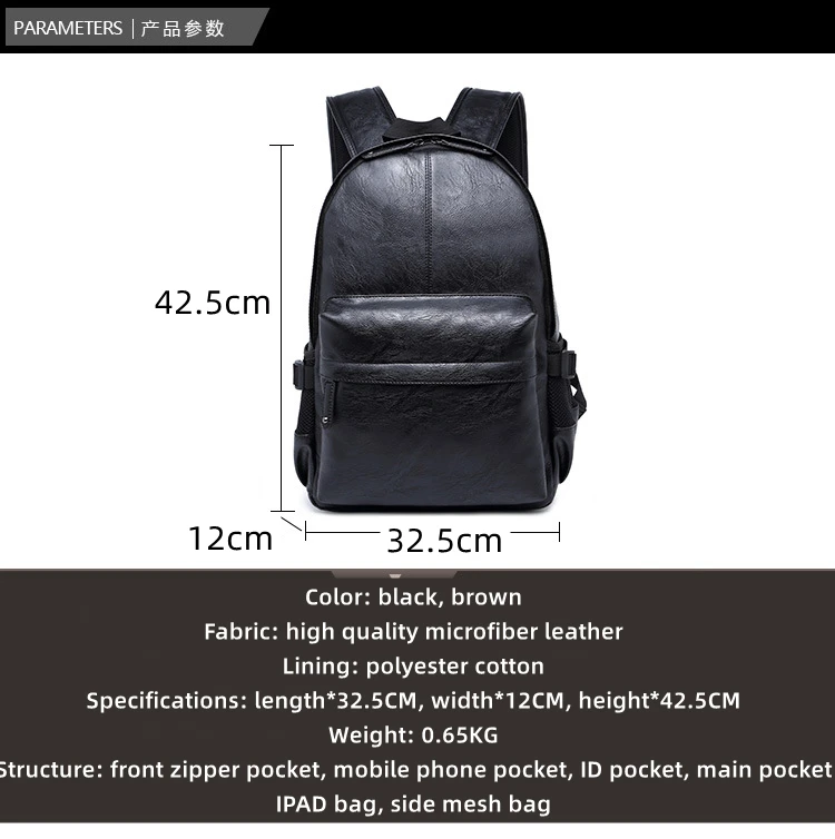 Модный рюкзак из искусственной кожи, мужской большой дорожный рюкзак, сумка для ноутбука, черный рюкзак для мальчика, большая школьная мужская деловая сумка на плечо, 9024