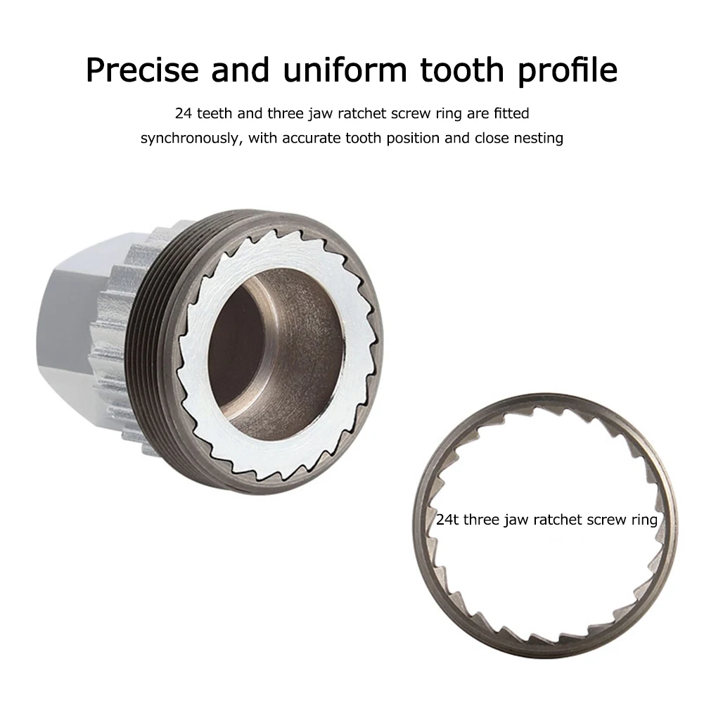 The 24 teeth are synchronously fitted with the three-claw ratchet ring, the tooth position is precise and tightly nested