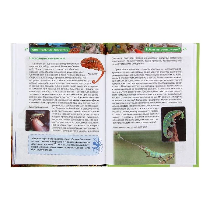 Книга рассказывает о самых разных видах животных, обитающих на Земле. Юные читатели узнают любопытные факты из жизни млекопитающих, птиц, насекомых, рептилий, амфибий, морских обитателей планеты, изложенные увлекательным языком.
