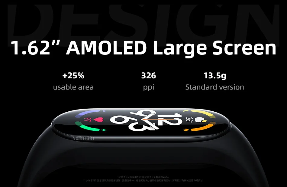 Mi bande 7 avec un écran AMOLED 1,62 "plein écran, la zone d'affichage est améliorée de 25%. Afficher plus d'information sur votre message, appel entrant et avis.