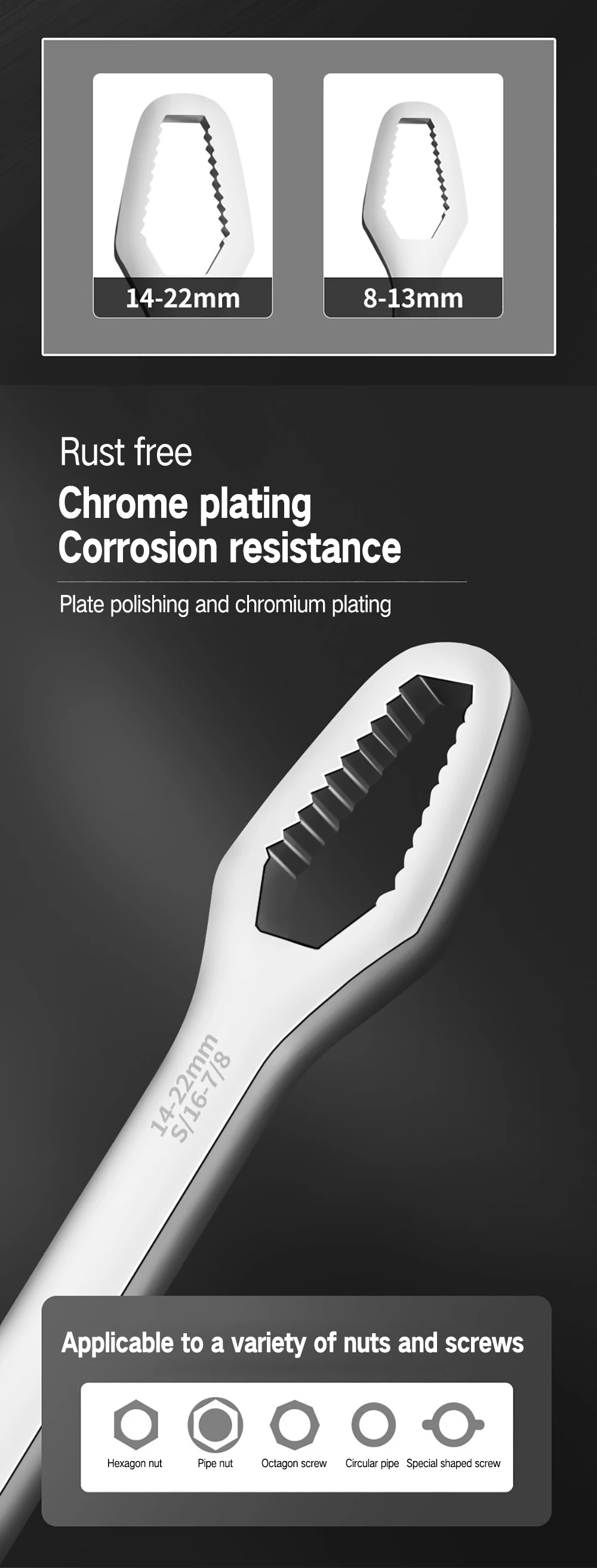 【Диапазон челюсти: 8-22 мм 】 подходит для демонтажа винтов различных спецификаций.