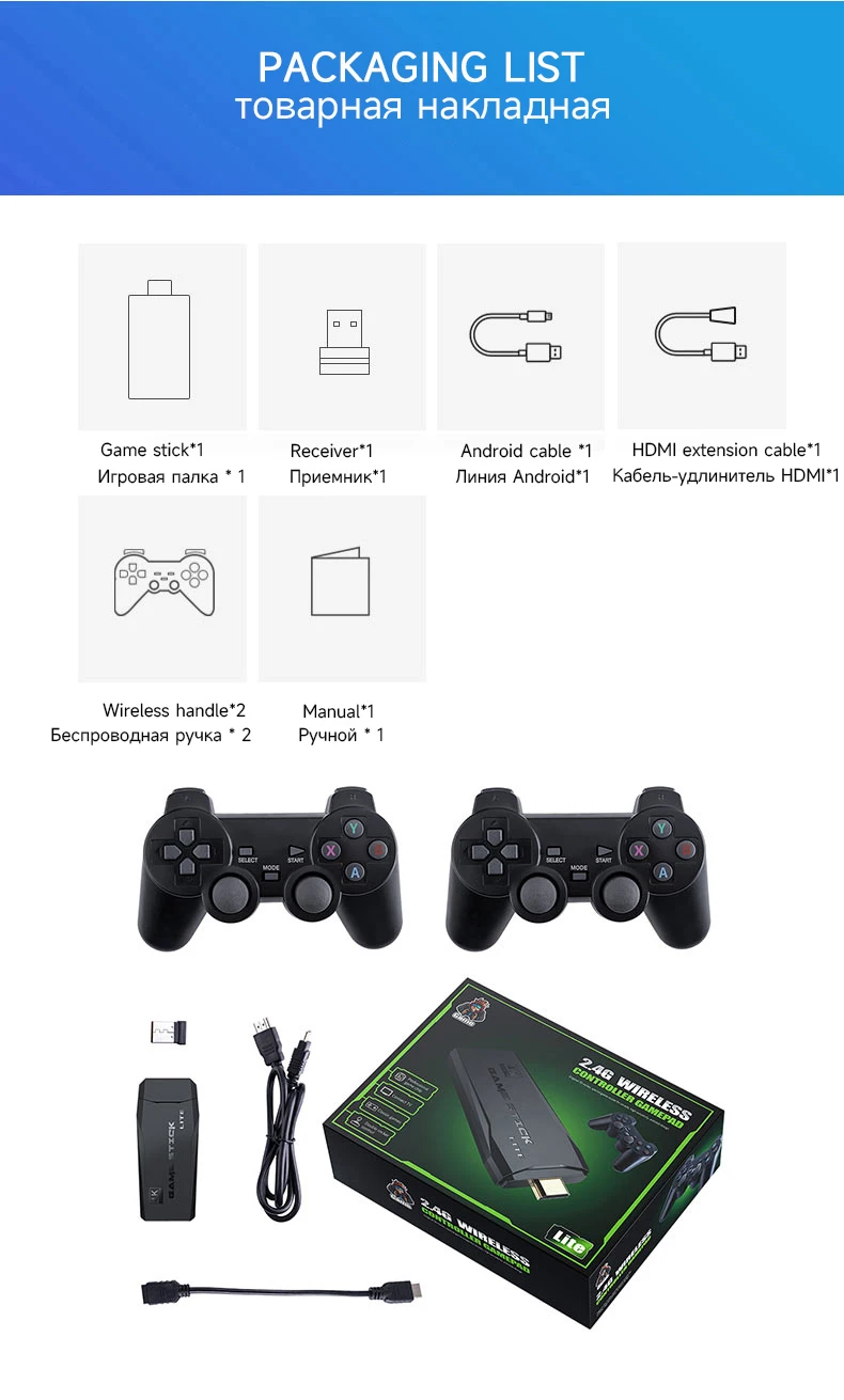 Multiple emulator formats: ps1/atari/mame/sfc/fc/gba/gb/gbc/md supports emulators. With dual wireless gamepads, the icing on the cake.HD Output: Supports 4k Ultra HD TV video output (1080p/720p) and monitors and projectors with HDMI input.Support download games: This game console supports players to search for games,supports players to customize their favorite games, and can play and download games by themselves. Equipped with wireless dual joysticks to play all the great games, make you enjoy the game even more, let youСмотрите так же другие товары: