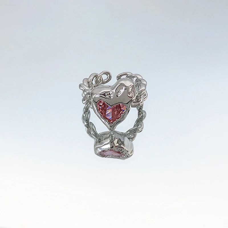 Женское асимметричное кольцо в форме сердца с розовым кристаллом, с вырезами, кольца в форме сердца для женщин, геометрические, циркониевые, вечерние, Винтажные Ювелирные изделия, подарки