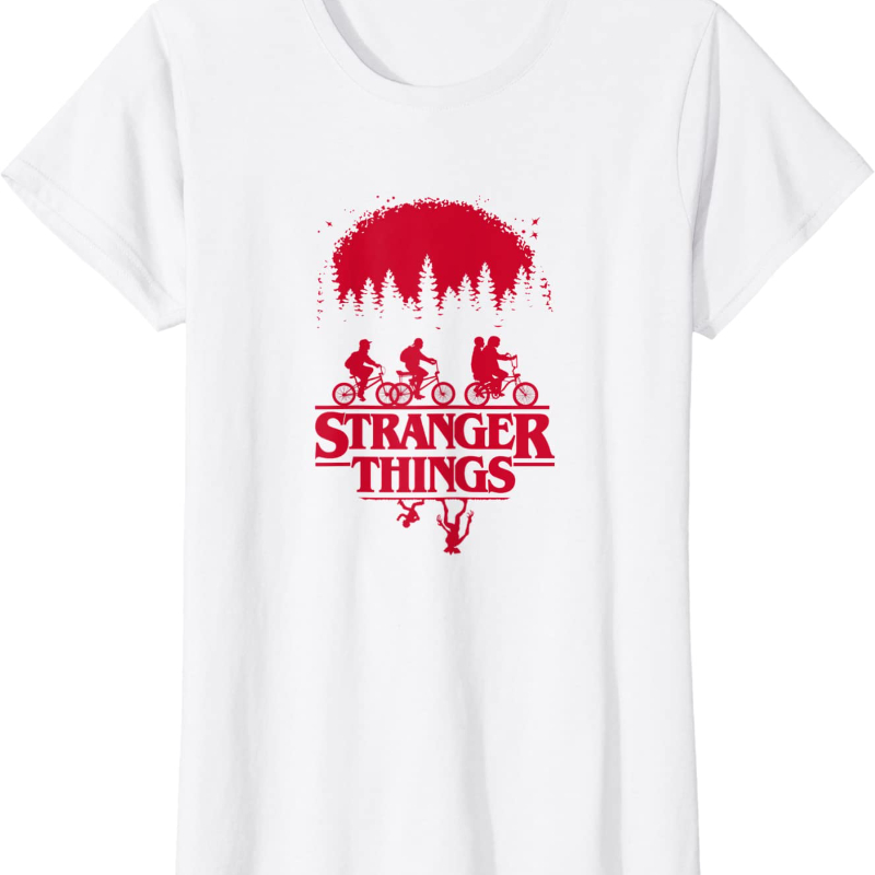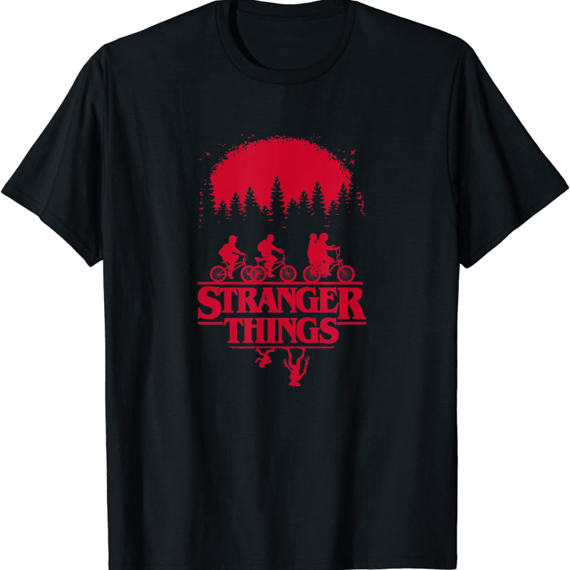 Странные Вещи группа выстрел езда на велосипеде вверх дном силуэт Футболка Аниме Манга Готический стиль унисекс уличная графическая футболка