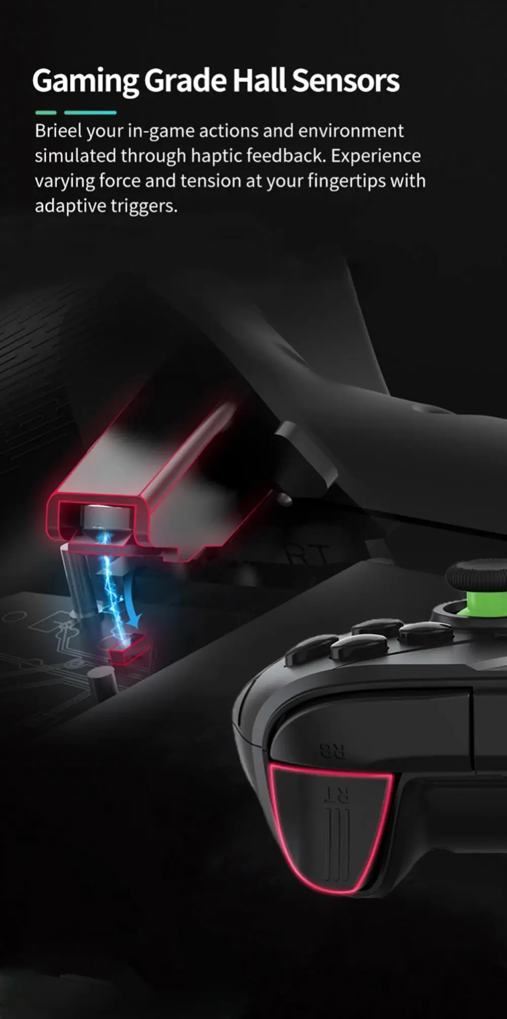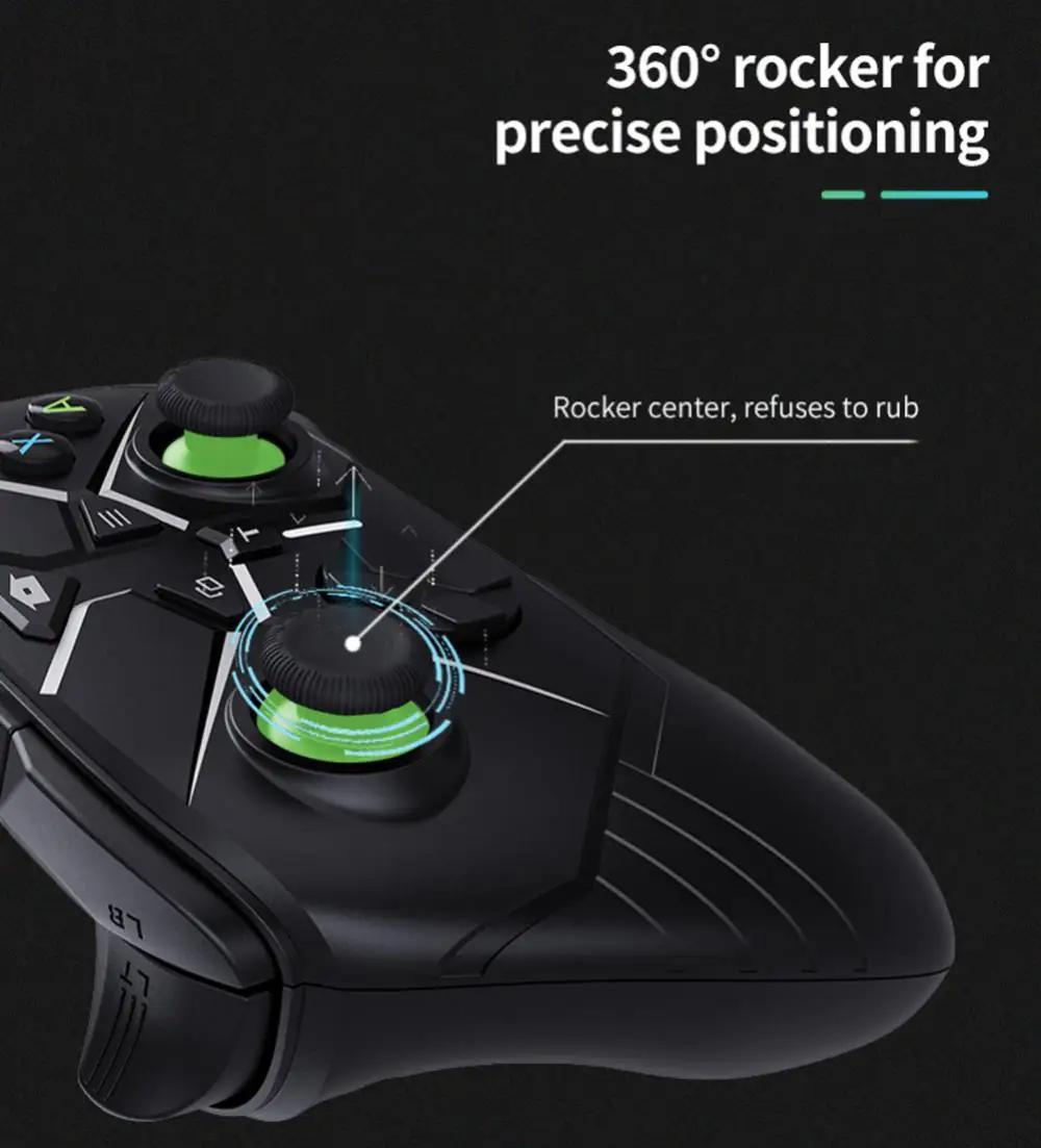 Встроенное управление движением: поддержка функции TURBO дает вам уютные бои, триггер и рокеры подходят к размеру пальца, что делает игровой джойстик идеально решает болевые точки, более гибкий и прочный.