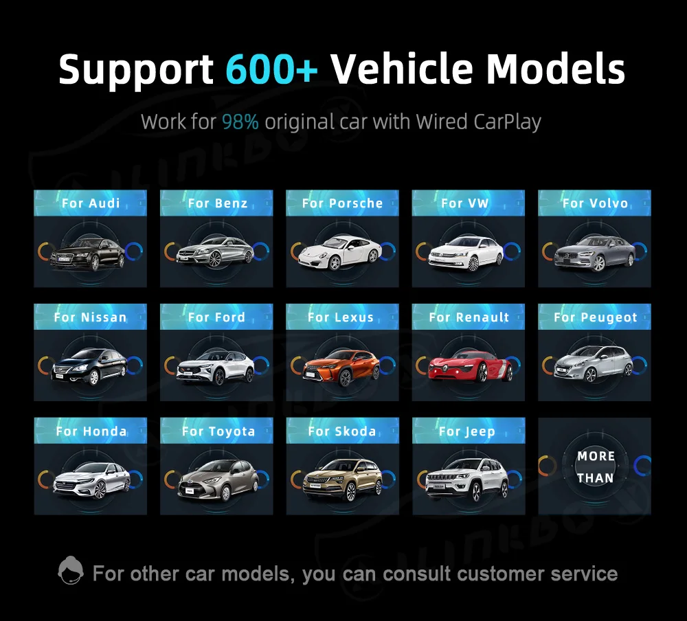 Здравствуйте, если у вашего автомобиля Android Auto, пожалуйста, проверьте, есть ли Apple Carplay, этот Apple Carplay находится на вашем радиоэкране, если нет, он не поддерживается, потому что наши продукты включены через оригинальный автомобиль Apple CarPlay протокол