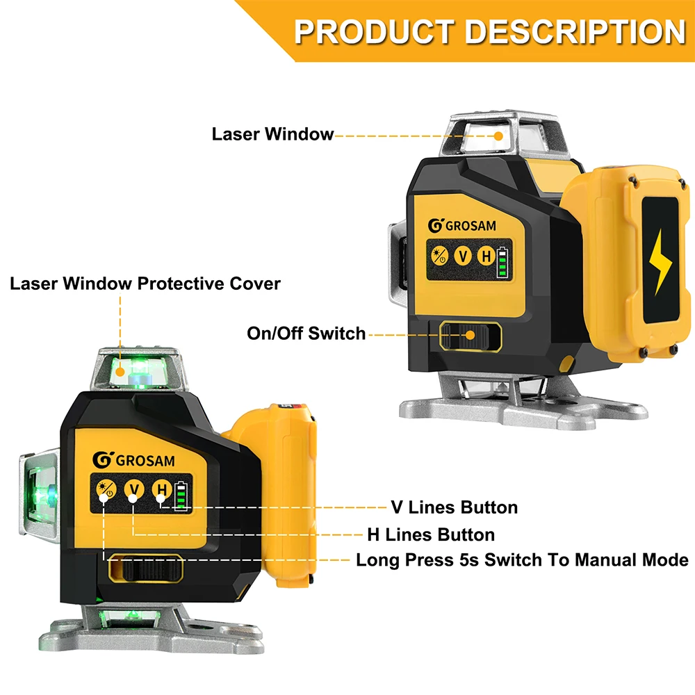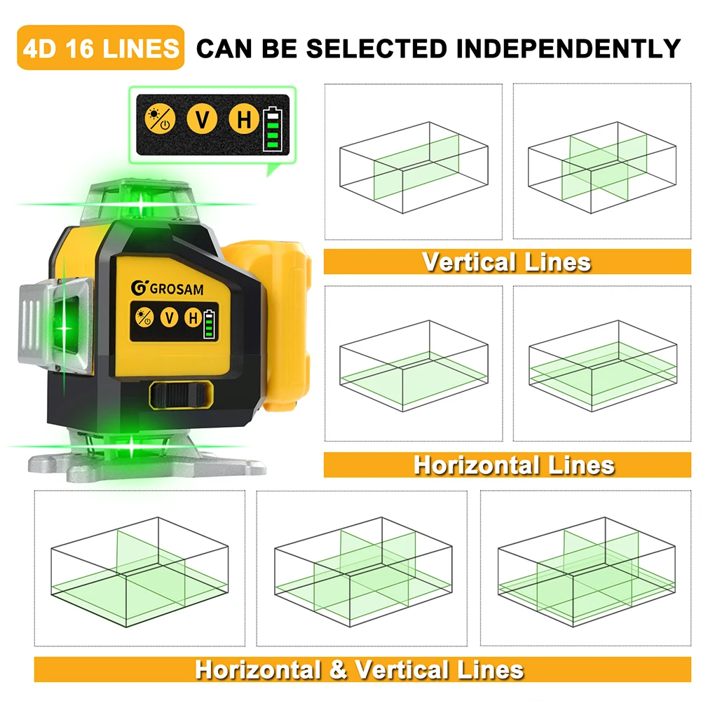 Самонивелирующийся лазерный уровень с поворотом на 360 градусов 16 линий - купить