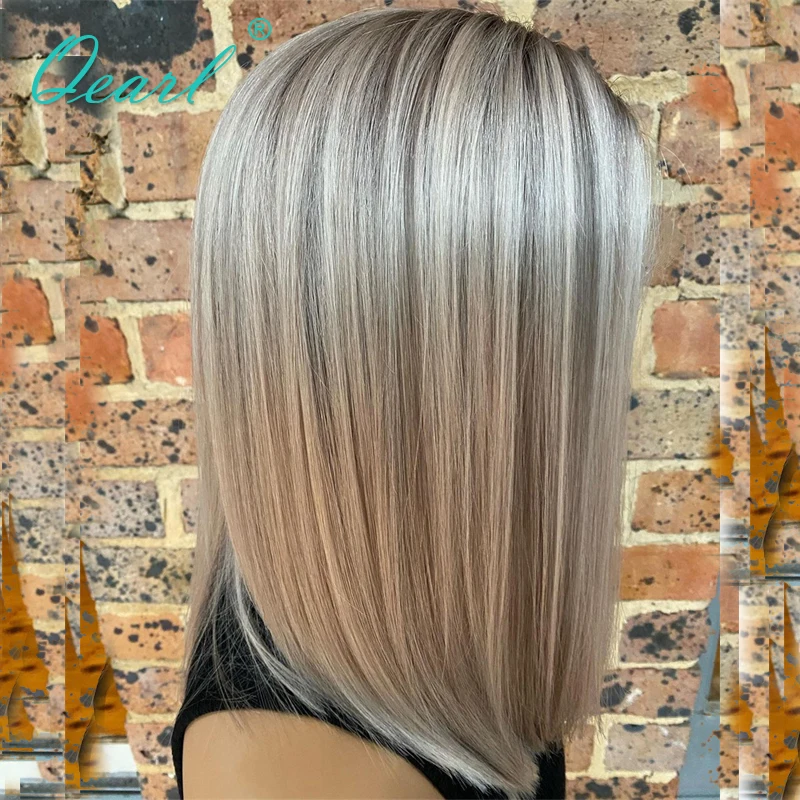 Бразильский прямой парик с кружевом спереди пепельно-серый блонд основные человеческие волосы Парики дешево Боб натуральный 13x 4 кружевной передний парик 150% Qearl