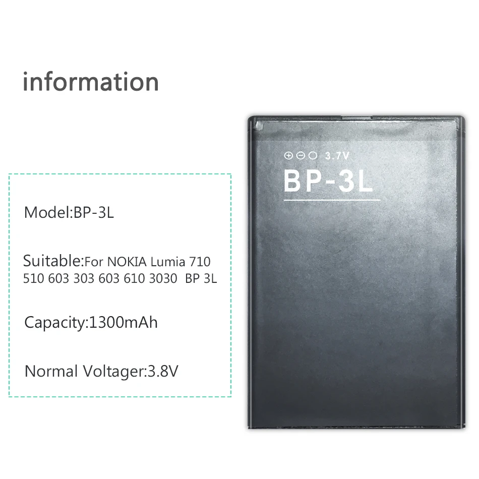Modname = ckeditor KiKiss 1300 мАч высокое качество BP-3L батареи для телефона для NOKIA Lumia 710 510 603 303 603 610 3030 BP 3L литий-полимерные батареи