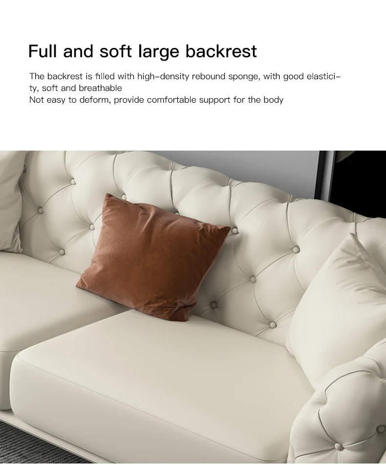 Roodtuo Leather Sofa For Living Room White Button Quilted Design Soft Гостиная Мебель в Современном Стиле Кровать Modern Couch
