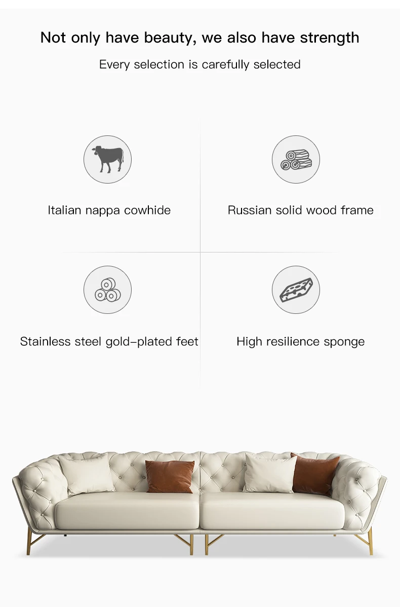 E.The sofa legs are made of high-quality titanium stainless steel,which is corrosion-resistant and not easy to deform.