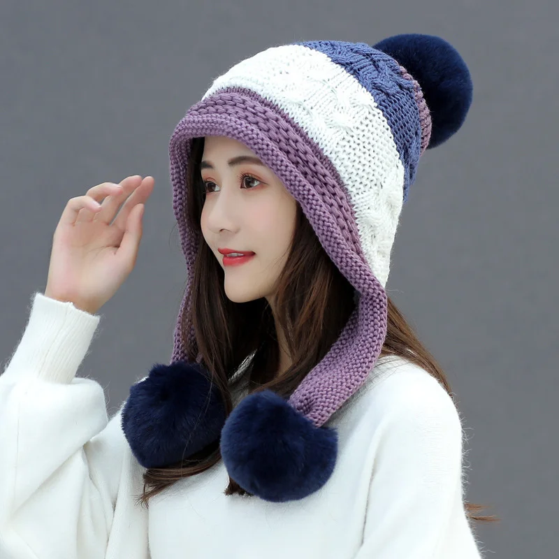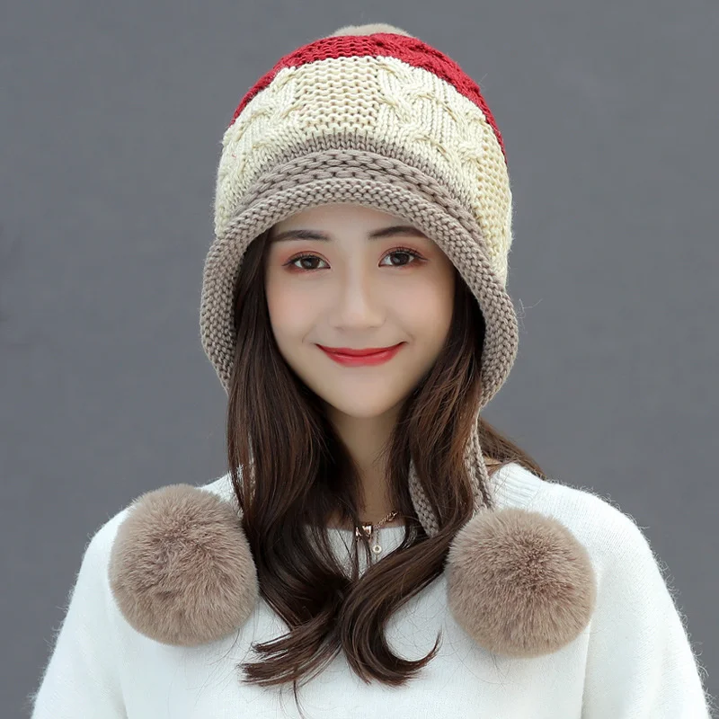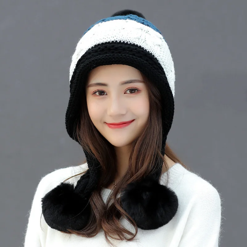 Женская зимняя шапка модные однотонные шапки теплая с милыми медвежьими ушками