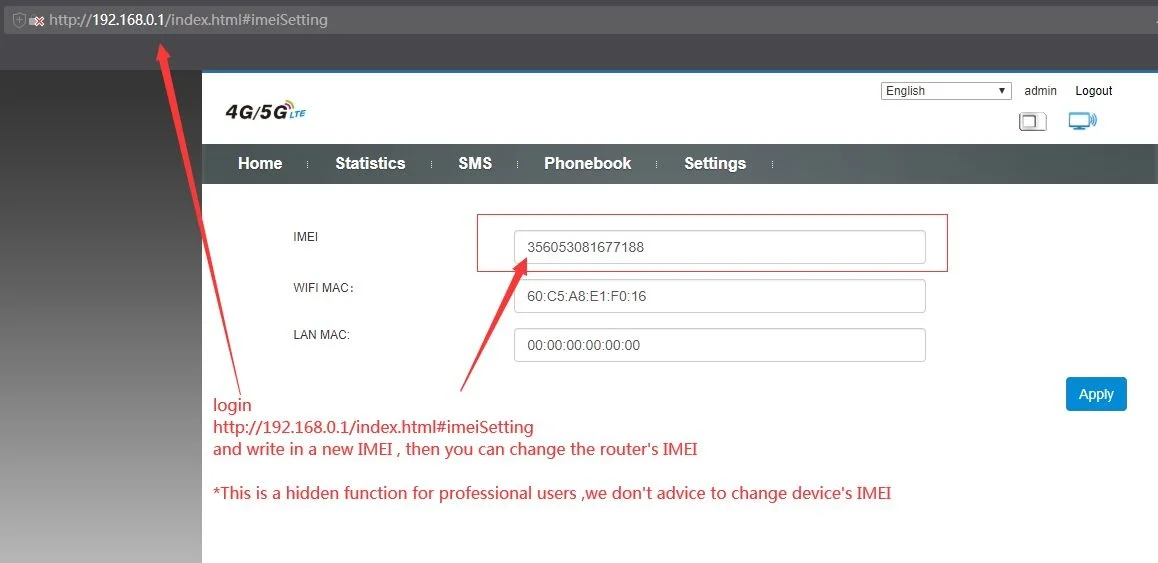И напишите в новом IMEI, затем вы можете изменить IMEI маршрутизатора. (Веб-страница может немного отличаться от изображений)