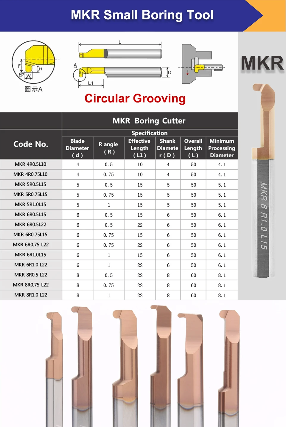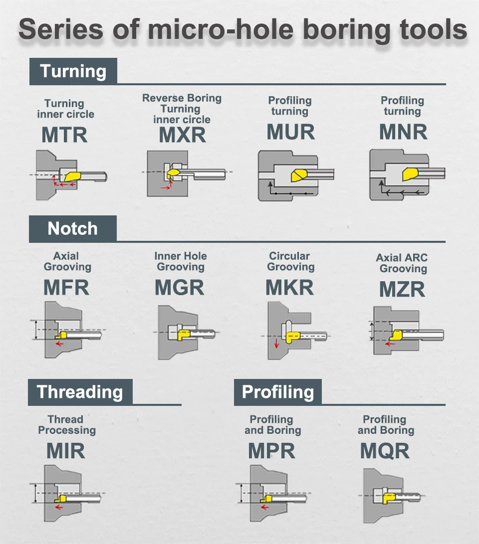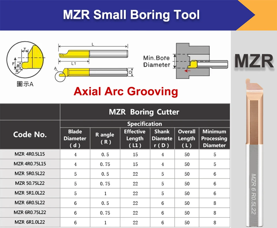 Название продукта:MFR / MGR / MKR / MZR / MIR / MQR / MPR Вольфрамовая сталь расточный резак(Малый резец канавок)