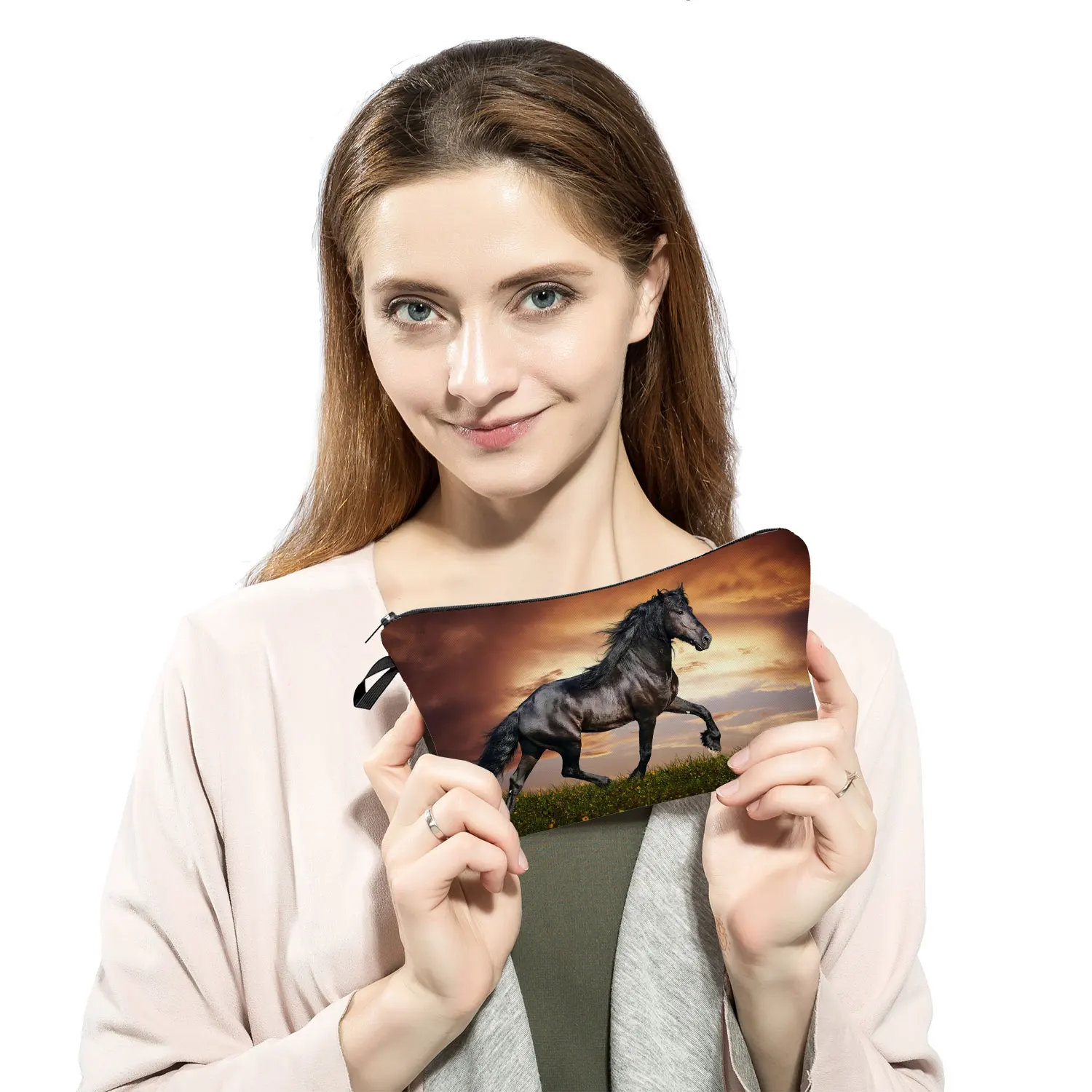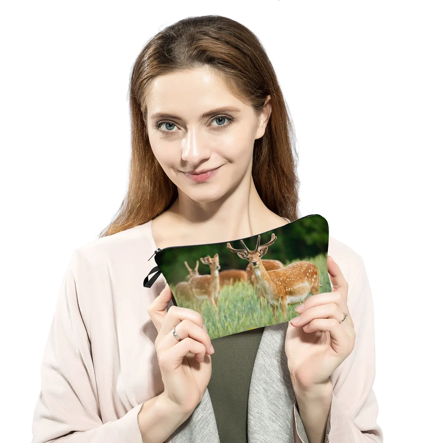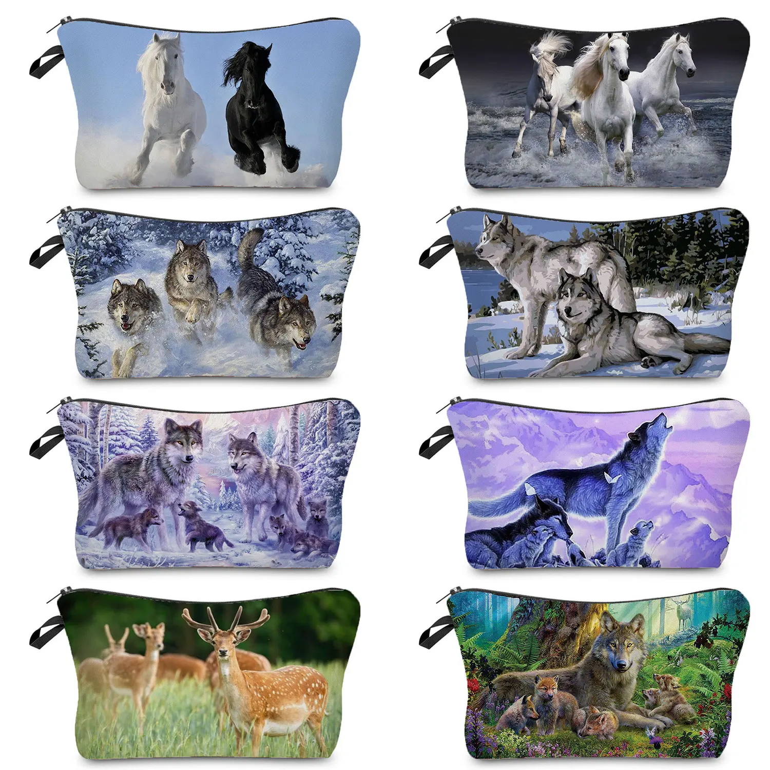 Дорожная Женская портативная лошадь, Волк Олень животное Принт пеналы для девочек большая емкость косметички косметичка