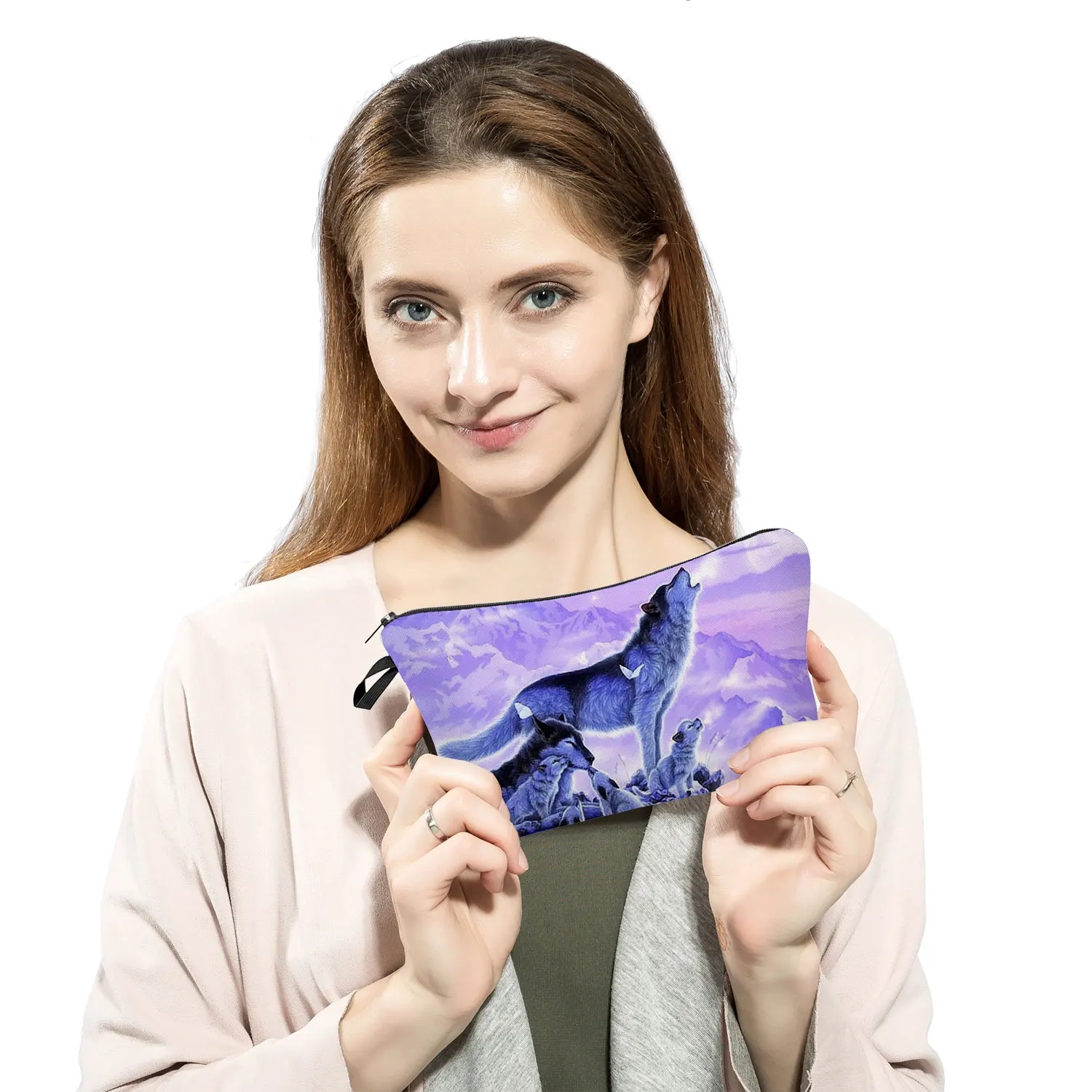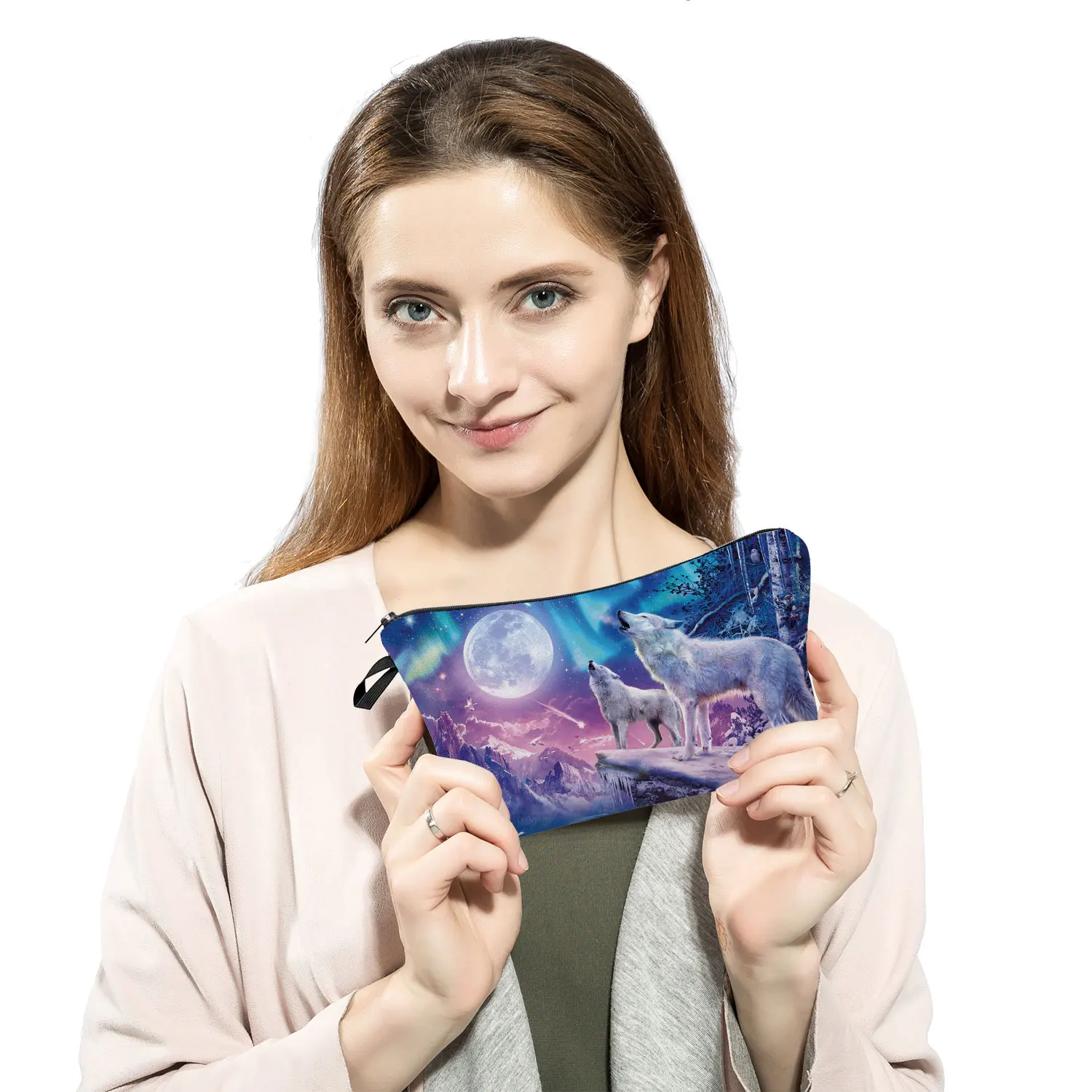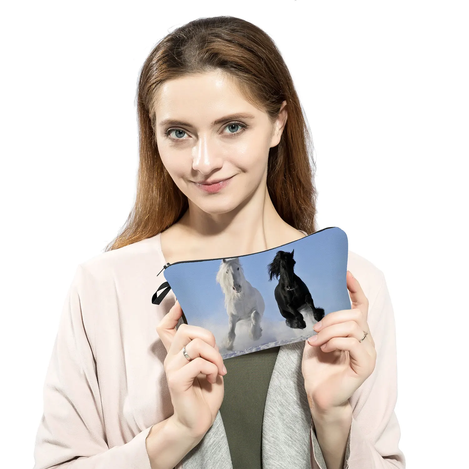 Дорожная Женская портативная лошадь, Волк Олень животное Принт пеналы для девочек большая емкость косметички косметичка