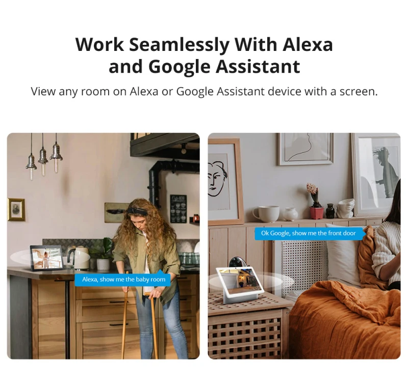 Просмотр любой комнаты на устройстве Alexa или Google Assistant с экраном.