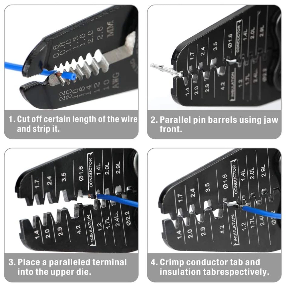 * Mekanisme roda gigi * mekanisme roda gigi presisi tinggi untuk keriting lengkap. * Sambungan crimp yang aman karena transmisi tuas yang optimal dengan kunci paksa yang dapat dilepaskan. * Hemat tenaga kerja * Ergonomi yang baik dan berat Tang yang rendah untuk operasi yang lemah. Peganan dua komponen yang dirancang secara эргономичная. * Fleksibilitas * 15 berbagai ukuran mati membuat produk ini cocok untuk berbagai ukuran terminal, dari kecil hingga besar. * Rentan kerut * mampu mengeriting kabel dari 30AWG hingga 14AWG, 0,05sq мм hingga 2sq мм.