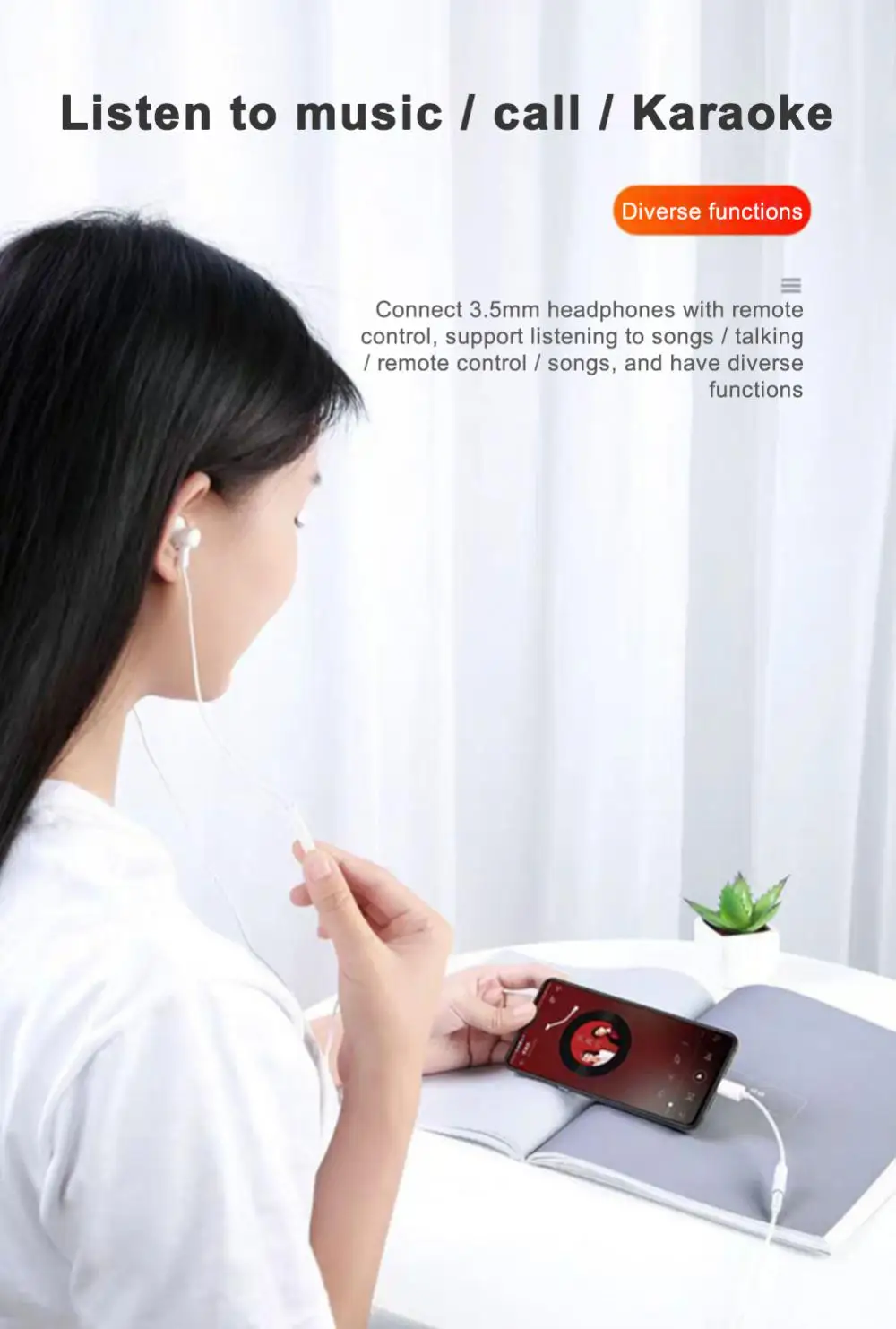 Кабель-адаптер для наушников Type-C-3,5, Поддержка мониторинга/вызова/управления проводом.