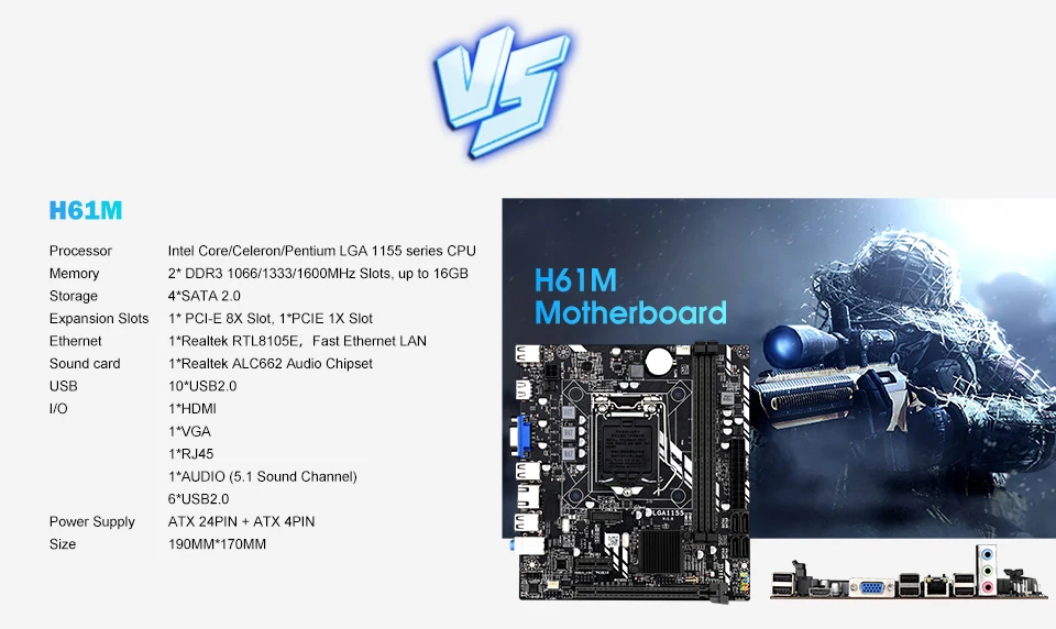 Из-за различных производственных партий могут быть некоторые различия между изображениями, которые вы видите, и продуктами, которые вы получаете, например, упаковочная коробка, цвет DIMM слотов, SATA портов, PCI или PCI-E слоты и другие порты, при условии изменения, без уведомления. Одна вещь, конечно, заключается в том, что мы никогда не поставим под вопрос качество продукции.