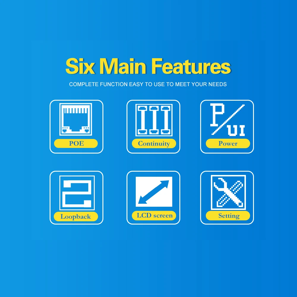 Тестер имеет три режима цифрового режима, аналоговый режим и режим PoE для опции для легкого отслеживания кабеля, что означает, что он оснащен самыми мощными технологиями расположения кабеля для любой рабочей среды. Кроме того, он включает измерение длины кабеля, тестирование неисправностей кабеля, тестирование PoE, мигание концентратора и функцию NCV, все это делает его необходимым инструментом для инженеров-кабельщиков.