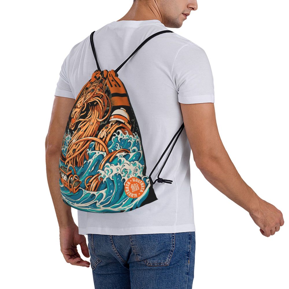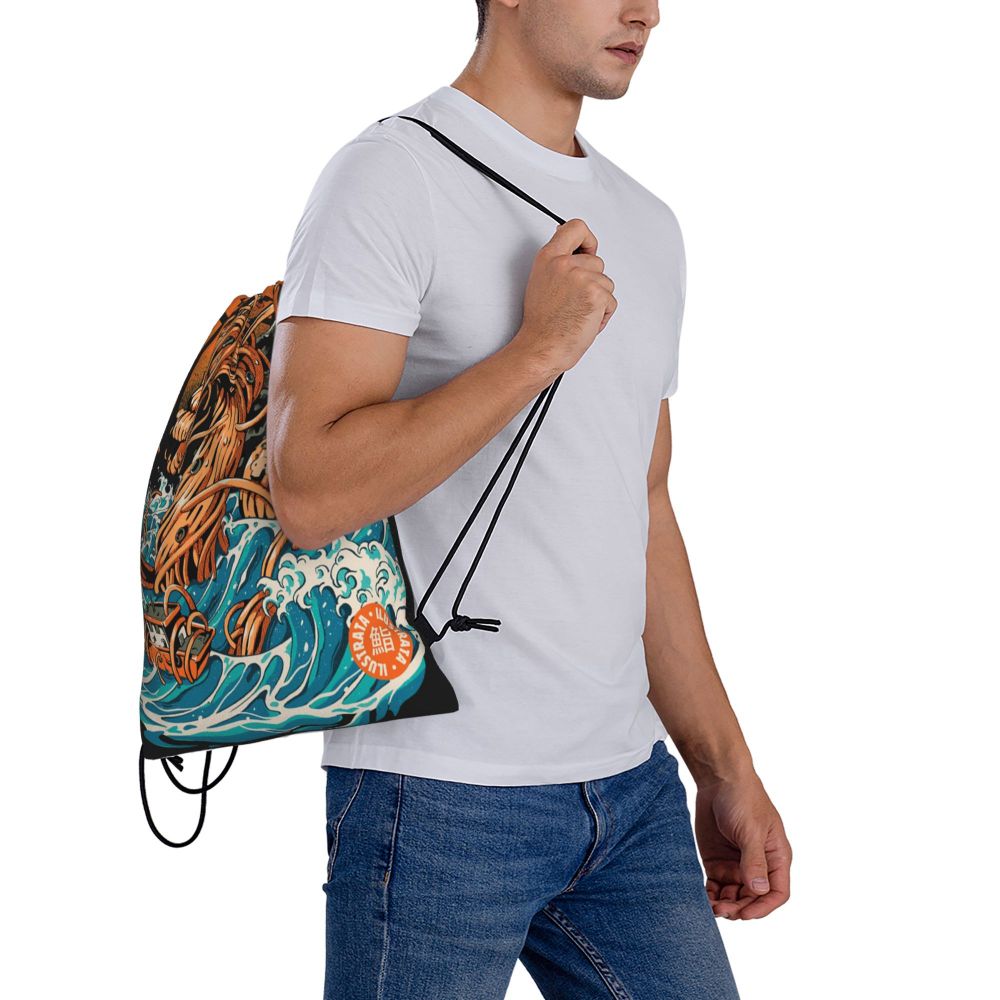 Made of water-repellent honeycomb polyester fiber, light and strong. The black polyester cloth fixed on the back is resistant to dirt and also has a fashionable sense of contrasting colors. The woven drawstring is durable and not easy to fall off. Drawstring design: It is very convenient to open and close, you can take the inner items well, you don't need to worry about losing items, it is very convenient, you can also adjust the length of the shoulder strap by yourself, just tie a knot under the rope, this style The biggest feature is that it is durable and lightweight. It is compact and does not occupy space when folded. It is convenient and practical to travel and carry. It can also print an exclusive logo design on group activities. It is a good gift for friends and relatives.